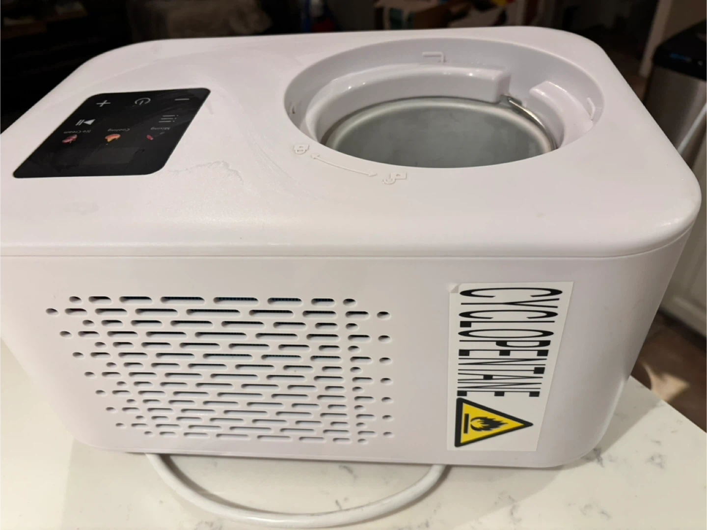 Selling an ice cream maker machine! It's in great condition and ready to make some delicious frozen treats. It features settings for mixing, cooling, and ice cream making, all easily controlled with the touch screen. Perfect for creating your own custom ice cream flavours at home!