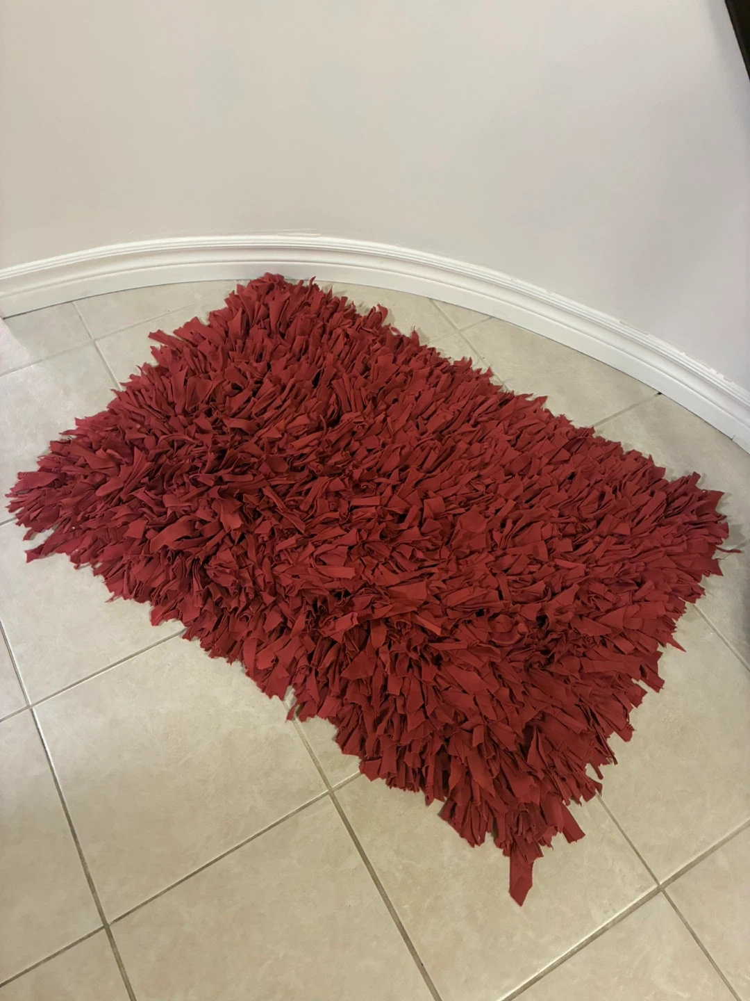Add a pop of colour to your space with this vibrant red rag rug from Pier 1 Imports! It's in great condition and ready to brighten up any room in your home