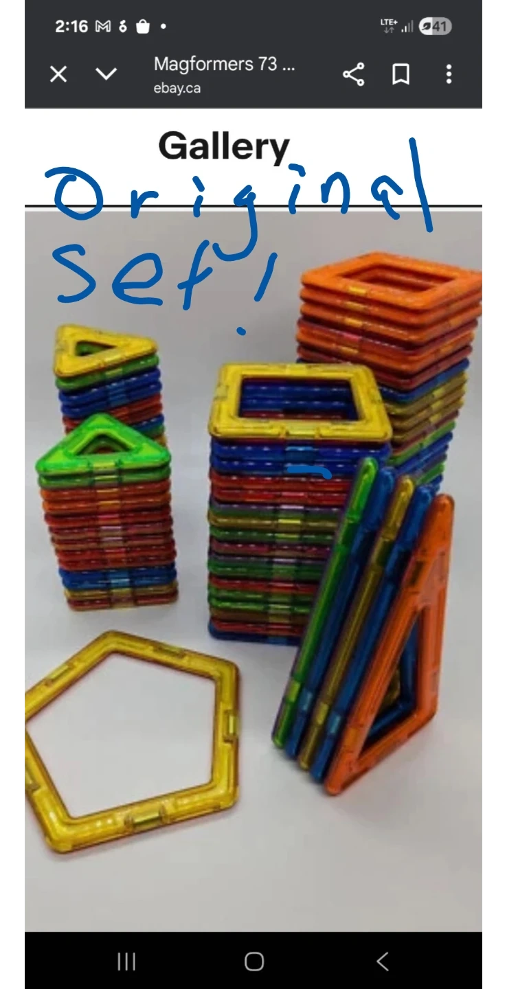 549I'm selling a set of Magformers brand Tiles! There is quite abit of pieces missing as there was originally 38 squares, 29 small triangles, 5 large triangles, 1 pentagon a total of 73. Unfortunately there are now only 16 squares, 17 small triangles, 4 large Triangles, 1 pentagon a total of 38 pieces. No box or instructions. Full new set is about $50, since it's not new and alot of pieces are missing the price will be much less. These magnetic building tiles are great for kids to explore their creativity, need a new home. Key Details Function: The tiles contain safely embedded magnets that "click" together from any edge, allowing children to build both two-dimensional flat patterns and three-dimensional structures. The magnets are designed to always attract and never repel, making building easy and intuitive. Educational Value: They are widely used as a STEM (Science, Technology, Engineering, and Mathematics) learning toy, helping to develop skills in geometry, spatial thinking, motor skills, and creativity. Materials & Safety: Reputable brands like Magformers make their tiles from high-quality, durable, and non-toxic ABS plastic, with the magnets securely sealed inside. Compatibility: While several brands exist (including Magna-Tiles and PicassoTiles), many are designed to be compatible with one another, allowing different sets to be mixed.