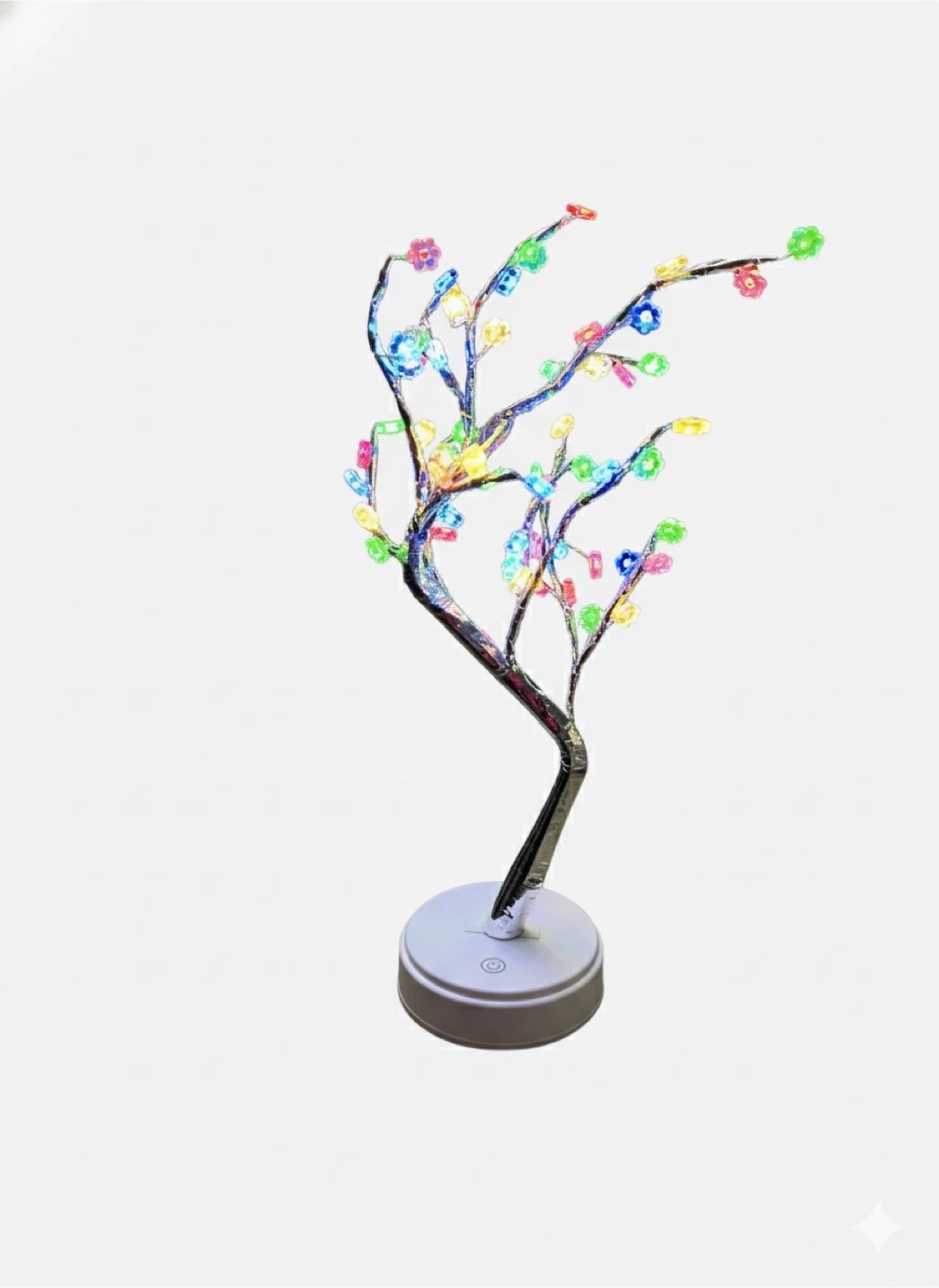 Add a touch of whimsy to your space with this cute decorative LED tree light! It features colourful flower-shaped lights on flexible branches. Perfect for adding a soft glow to any room