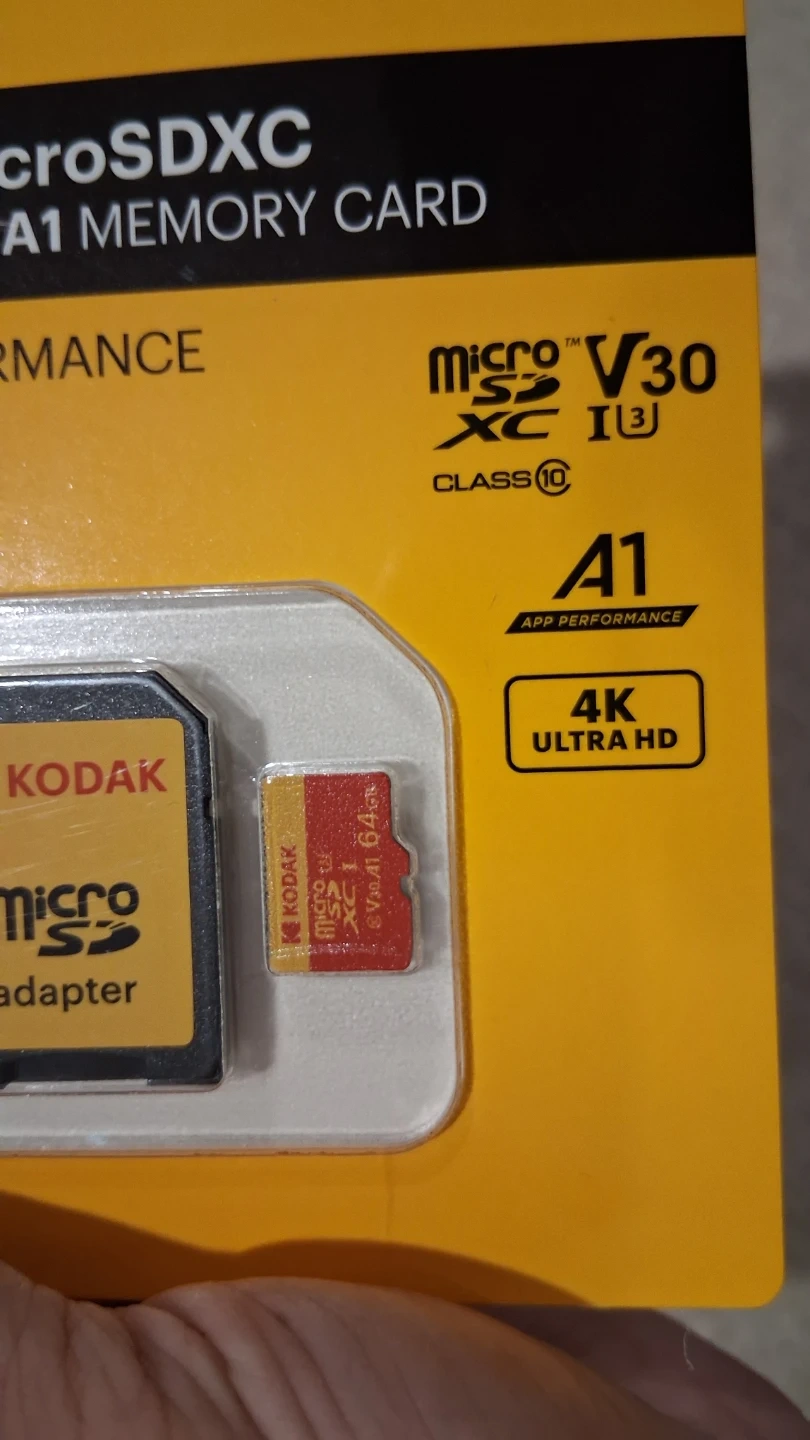 Dual Lens Dashcam w 64GB Kodak Utra Performance A1 Card