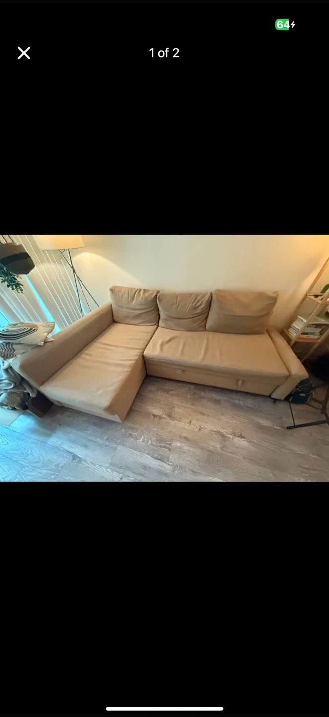 Selling a comfy beige sectional sofa! It's in great shape and ready for a new home. Perfect for lounging and adding a cozy touch to any living space.