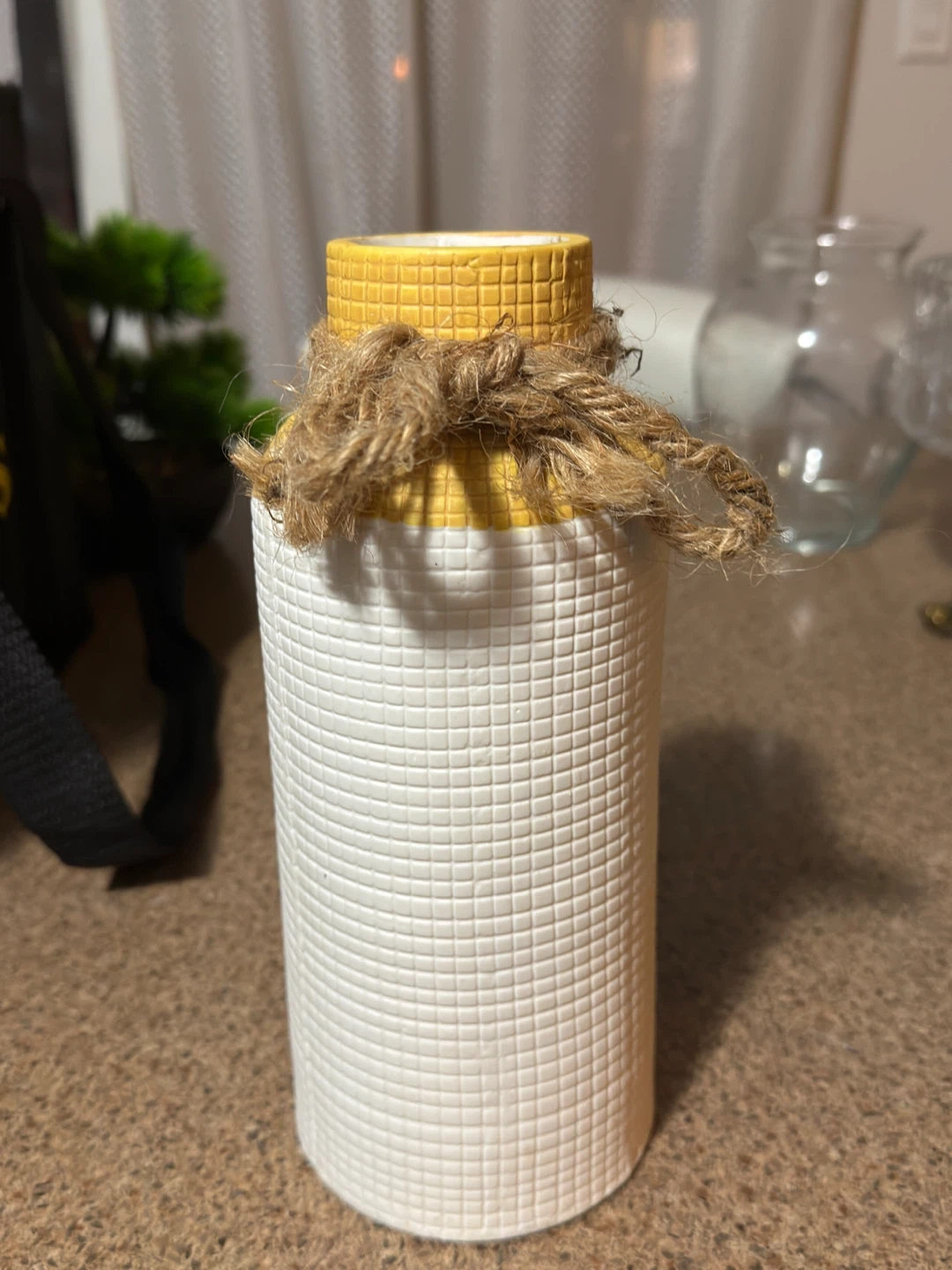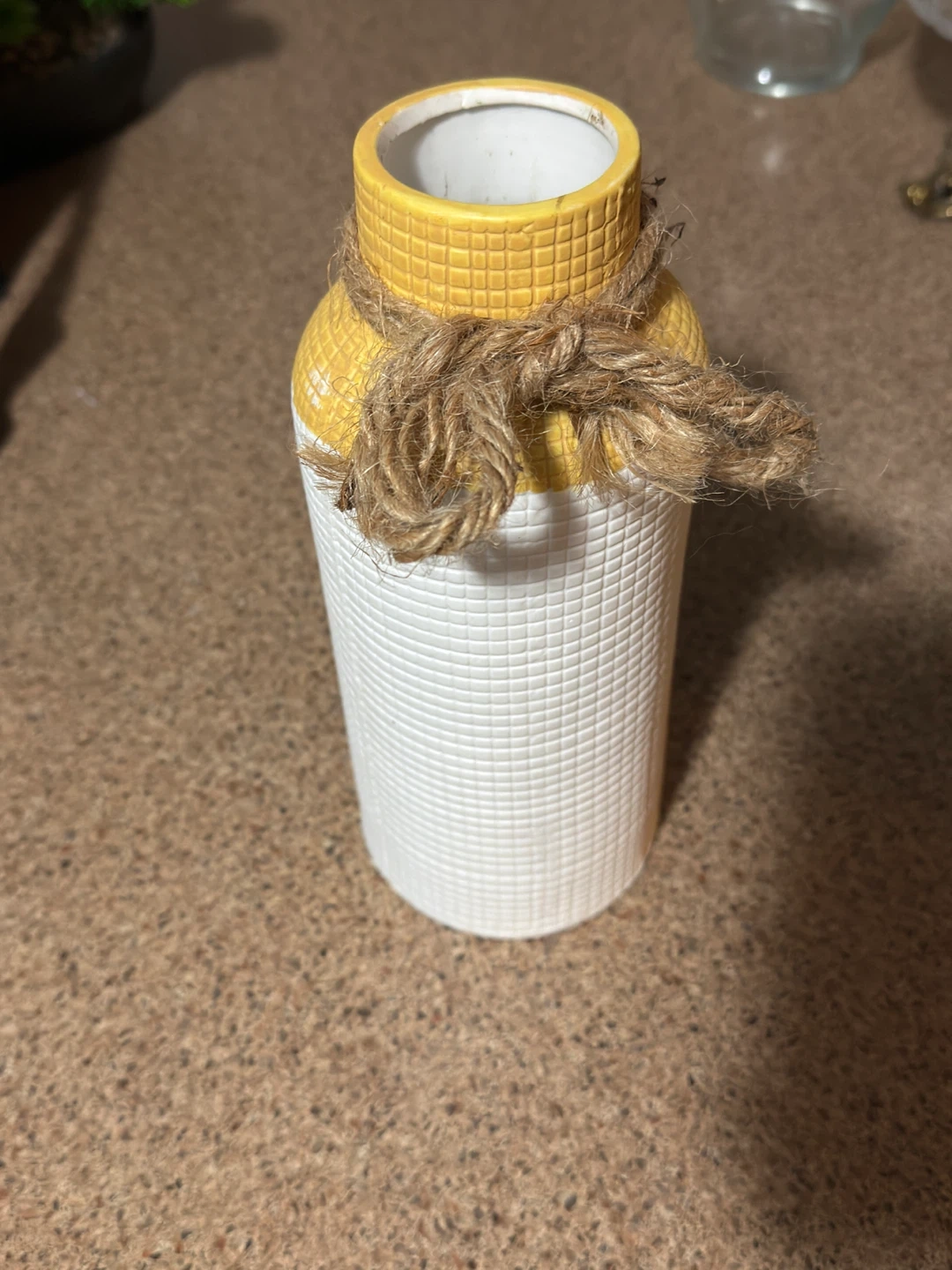 Buy & SellDecorative White and Yellow VaseDecorative White and Yellow Vase$12Here's a cute decorative vase! It's white with a yellow top and a rustic rope detail. Perfect for adding a touch of charm to any room in your homeConditionLike new0 chats·0 favorites·3 viewsSELLERverifiedZeinaWillmott681 reviewWHERE TO MEETCheck Location