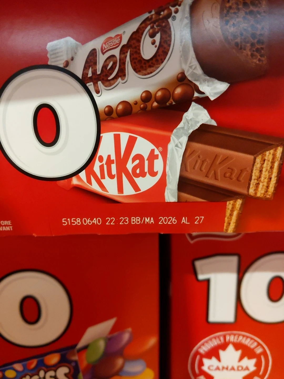 Selling a box of Nestlé 100 Assorted Mini Bars and Candies, weighing 977g! It includes Smarties, Coffee Crisp, KitKat, and Aero bars. Perfect for sharing or enjoying yourself