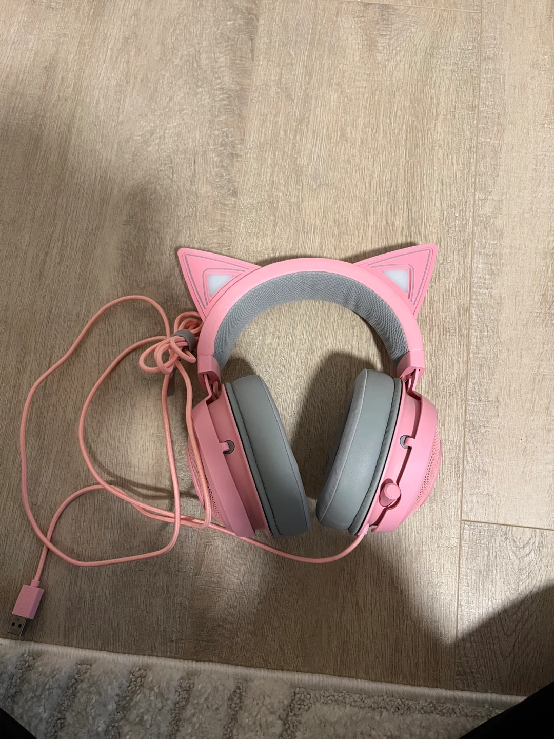 Selling a Razer Kraken Kitty Edition gaming headset! It's in great condition and ready for a new home. The cute kitty ears light up, and the sound quality is awesome for gaming and listening to music. Perfect for anyone who wants to add a bit of fun to their gaming setup