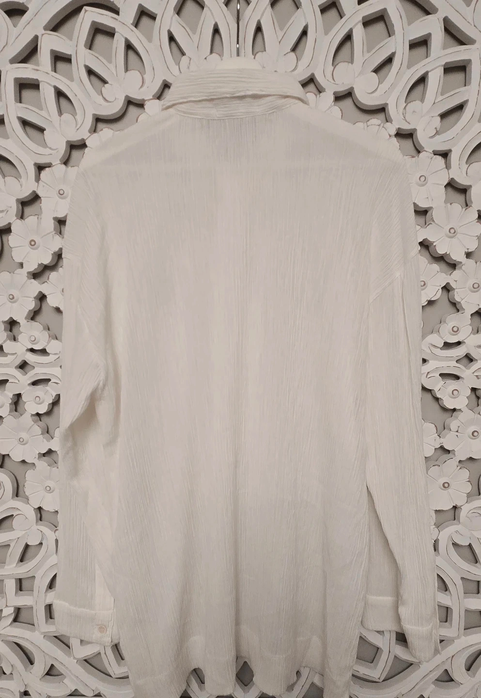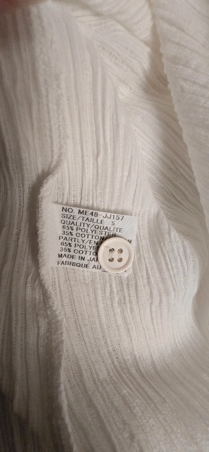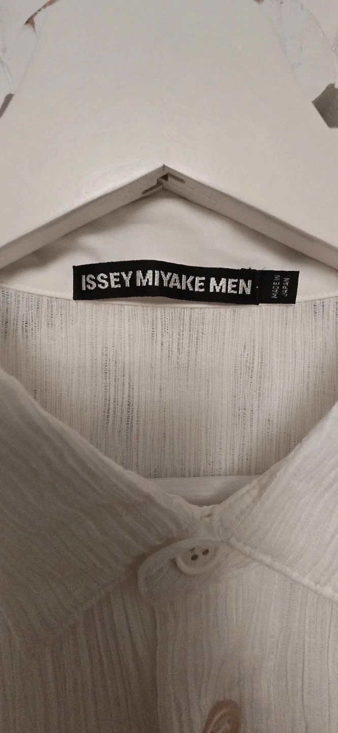 Selling a gently used Issey Miyake Men white shirt. The fabric is a blend of 65% polyester and 35% cotton, made in Japan. It's a stylish and comfortable piece!