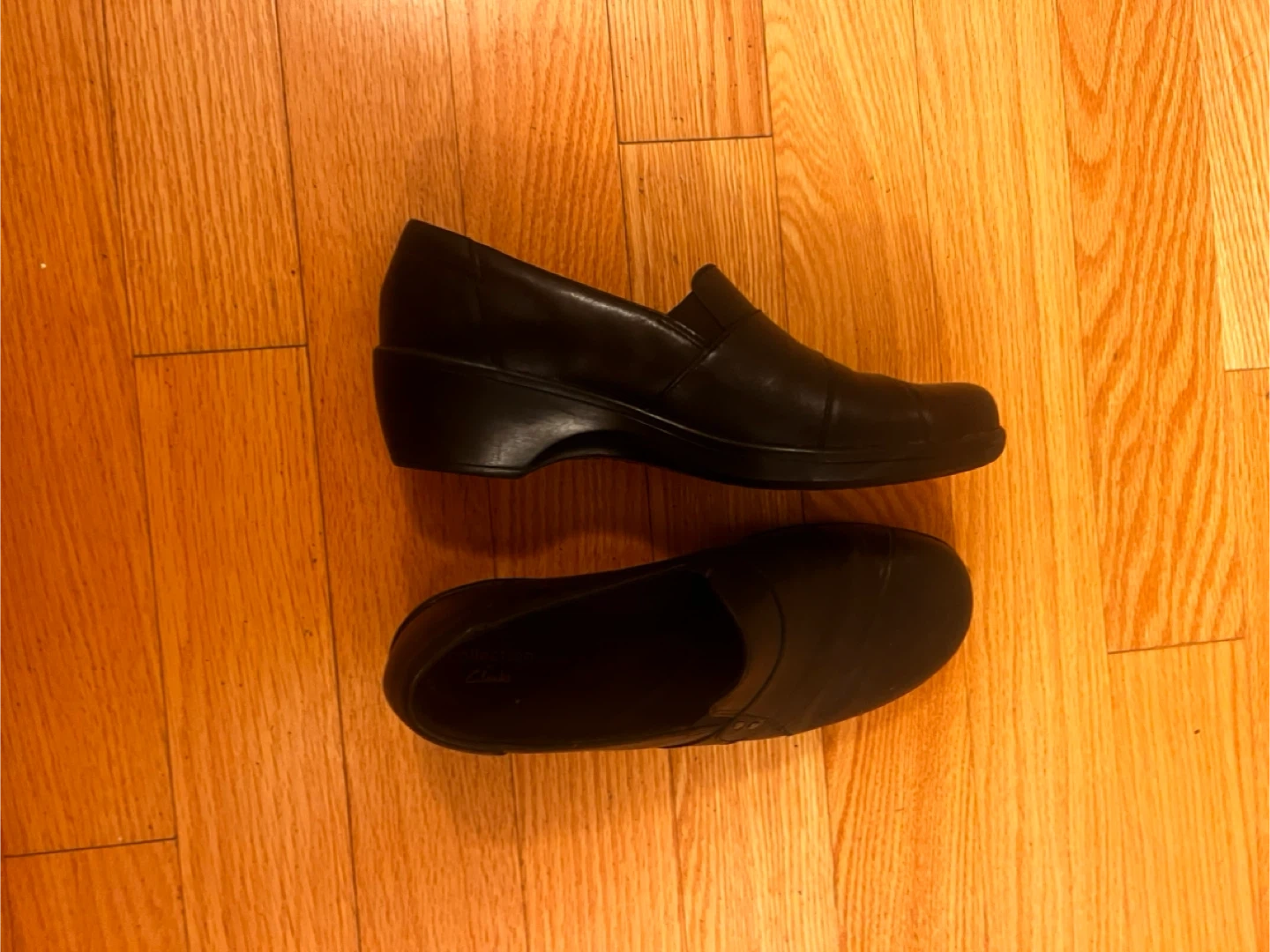 Buy & SellClarks Black Leather Wedge LoafersClarks Black Leather Wedge Loafers$15Selling a pair of Clarks black leather wedge loafers. They are in great condition and perfect for everyday wear!ConditionNewBrandClarksWHERE TO MEETCheck LocationView MapSELLERverifiedRebeccaLakeview650 reviews1 chats·0 favorites·34 viewsSEND CHAT TO SELLERHi Rebecca! I’m interested in your listing.Hi Rebecca! I’m interested in your listing.Get the Karrot app to chatSign In to chat