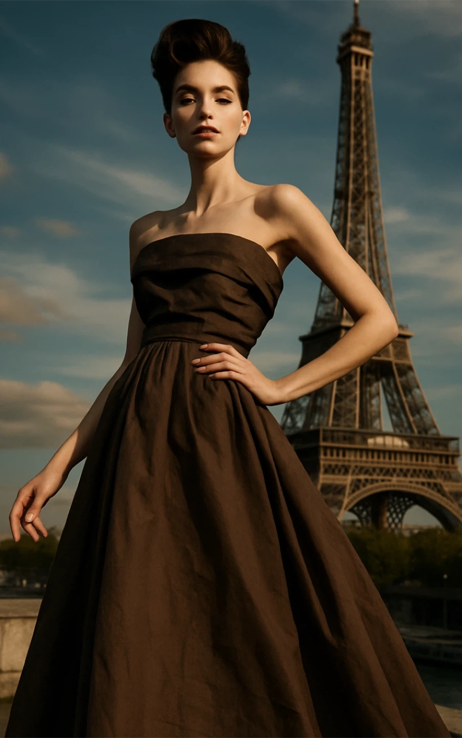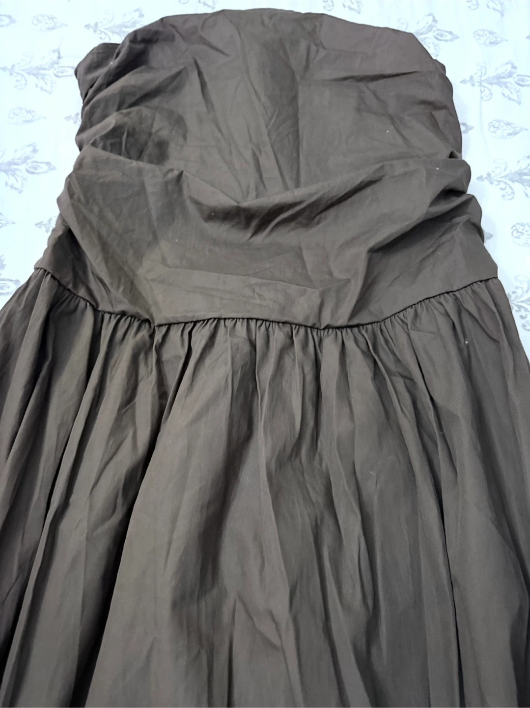 A cute brown strapless dress that is in good condition! It's perfect for a night out or a special occasion. Feel free to message me with any questions!