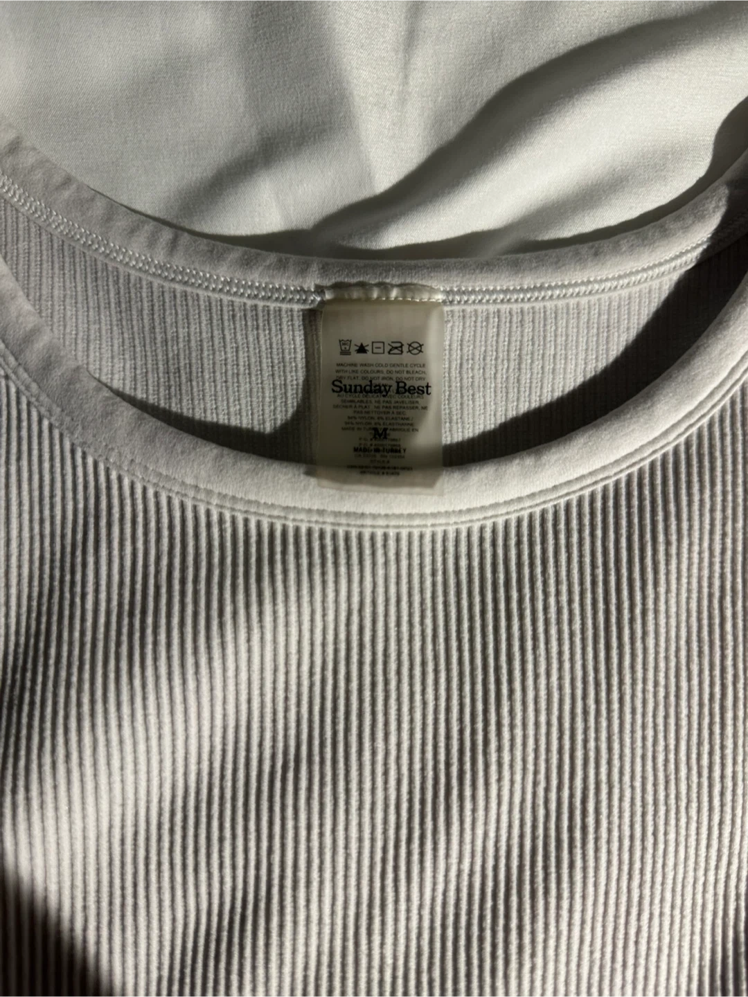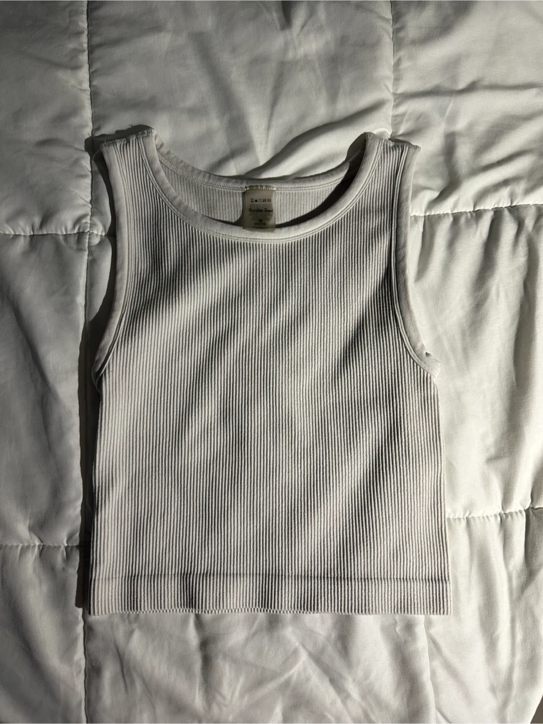 Here's a cute white ribbed tank top from Sunday Best! It's a size medium and in great condition. I have never worn it. Perfect for layering or wearing on its own during warmer weather