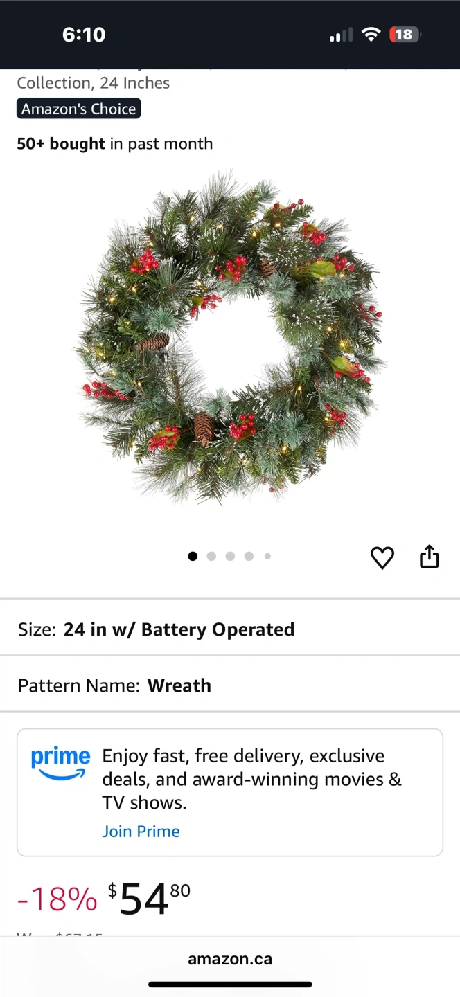 Selling a pre-lit artificial Christmas wreath from National Tree Company! It's decorated with pine cones, berry clusters, and frosted branches. It is 24 inches in diameter and battery operated. The original price was $54.80