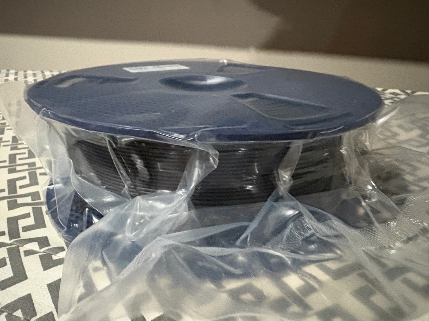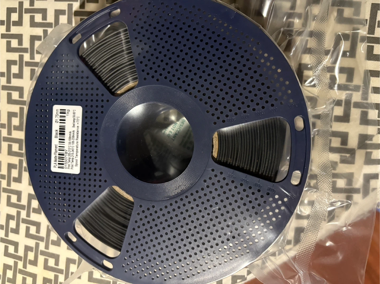 Selling a roll of black PLA Matte Filament. It's 1kg and 1.75mm in diameter. The recommended print temperature is 215-245°C and the bed temperature is 50-60°C. Spool temperature resistance is less than 70°C