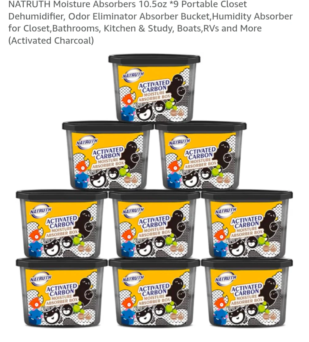 Selling a pack of 9 NATRUTH moisture absorbers! These are 10.5oz each and are great for closets, bathrooms, kitchens, studies, boats, RVs, and more. They work as a dehumidifier and odor eliminator with activated charcoal