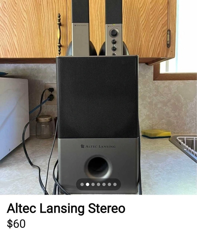 These are a used set of Altec Lansing speakers, great for a desktop or small entertainment system. They feature a subwoofer and two satellite speakers for a full sound experience. Note that they are in used condition, but fully functional. * Brand: Altec Lansing * Speaker Type: Computer * Configuration: 2.1 System Looking at similar listings, these speakers typically sell for around $40-$80, depending on condition. I've priced them at $60, a fair price considering their condition. If the ad is up, they're available!