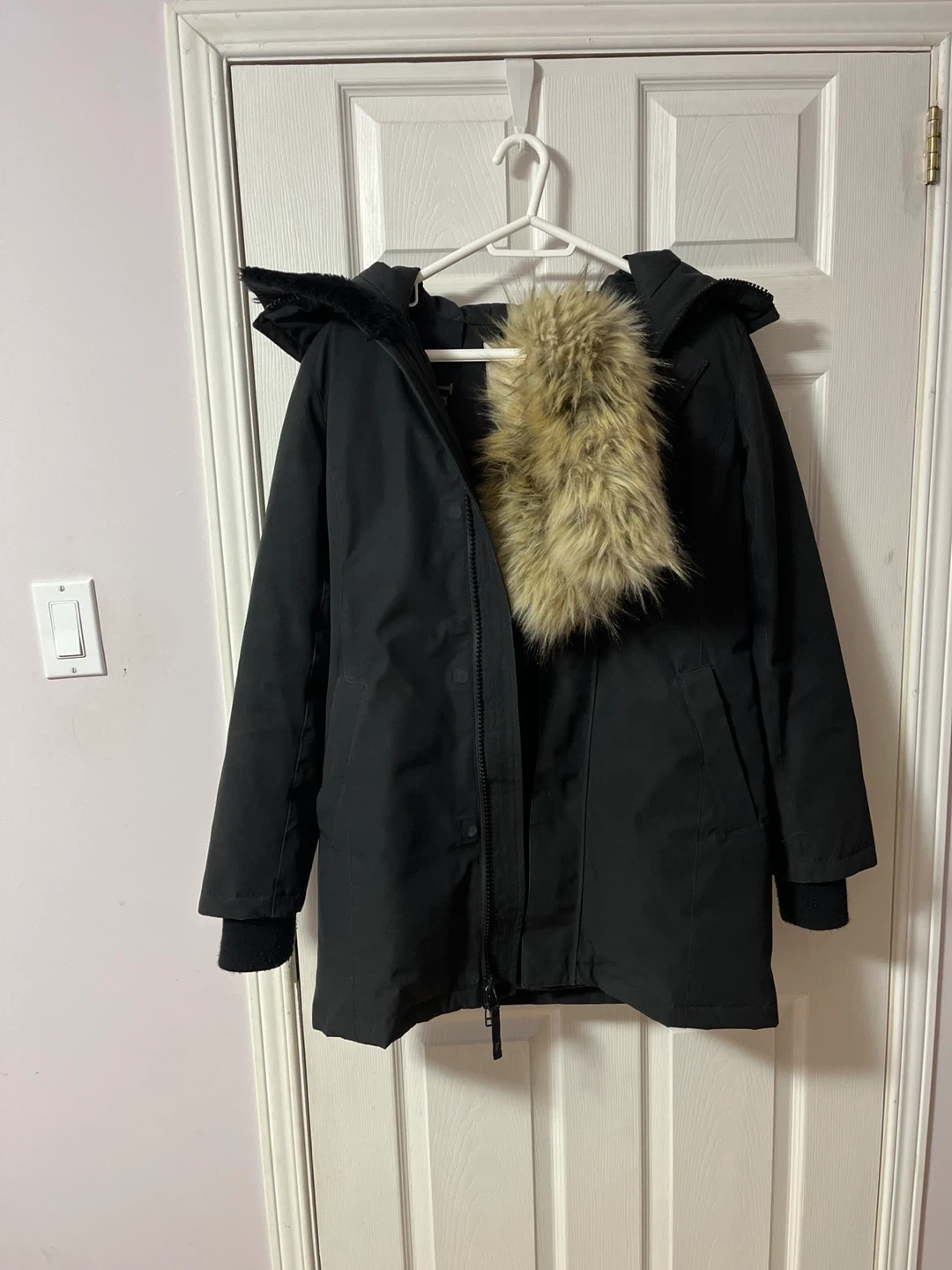 Selling a Tna Haven Parka in size small! It's designed in Canada. The fabric is water- and windproof with a Durable Water Repellent (DWR) finish and a breathable coating to keep you comfortable and dry