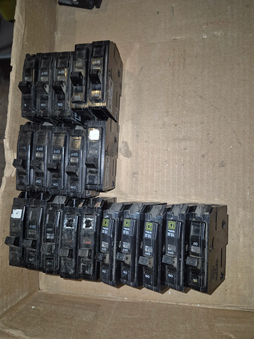 Selling 15- 15 Amp Square D QO circuit breakers. They're rated for 120/240V, 10,000 current interrupting rating.