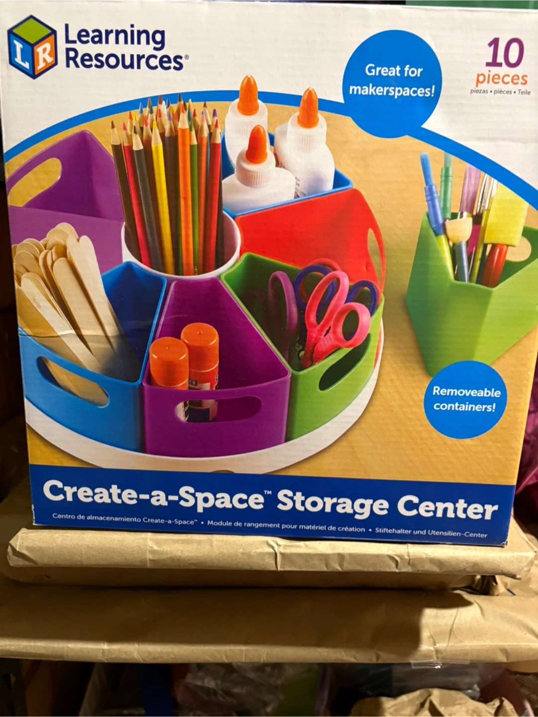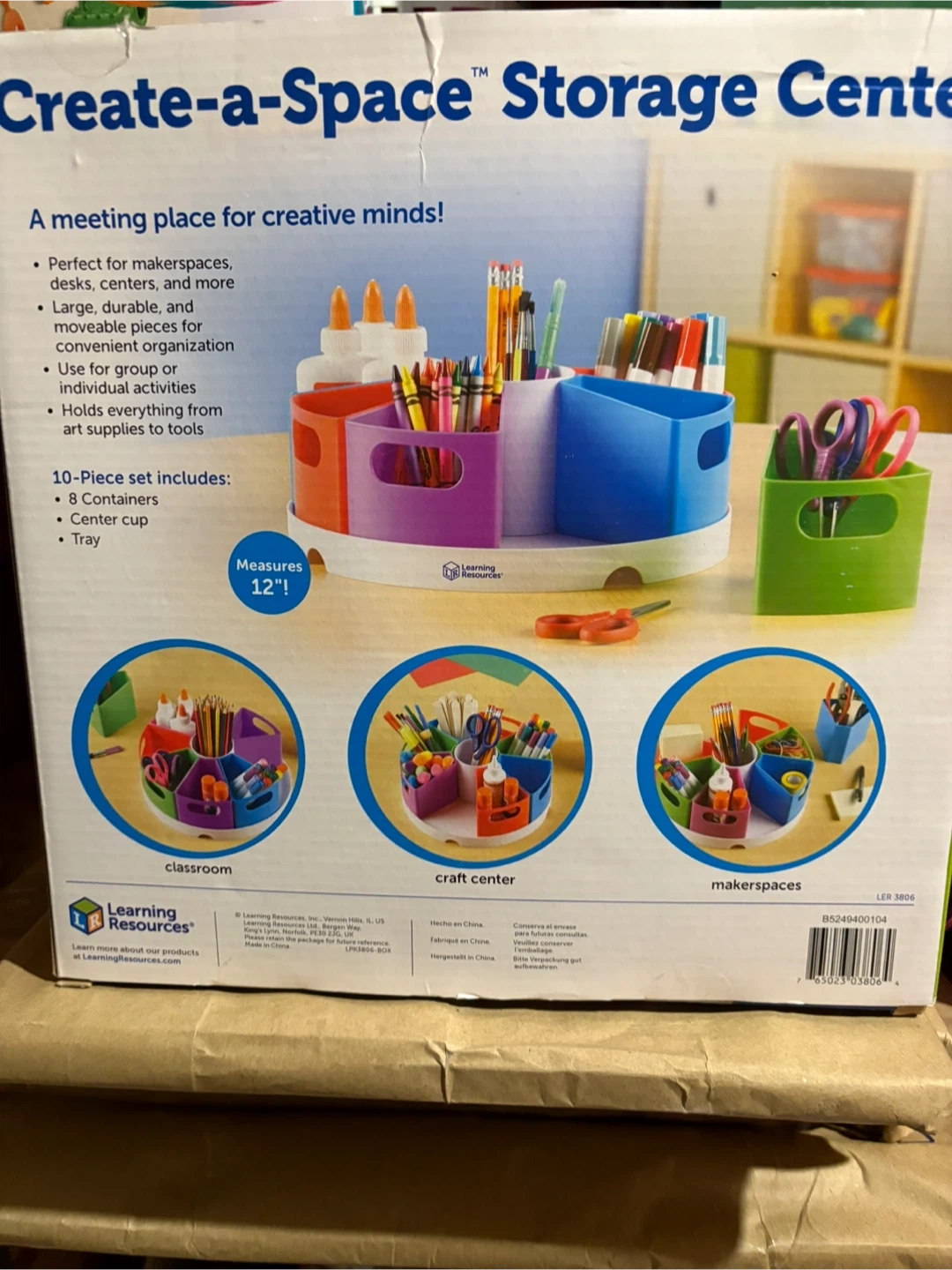 Keep your art supplies tidy with this Learning Resources Create-a-Space Storage Center! It's perfect for makerspaces, desks, and more. This set includes 10 pieces: 8 containers, a center cup, and a tray
