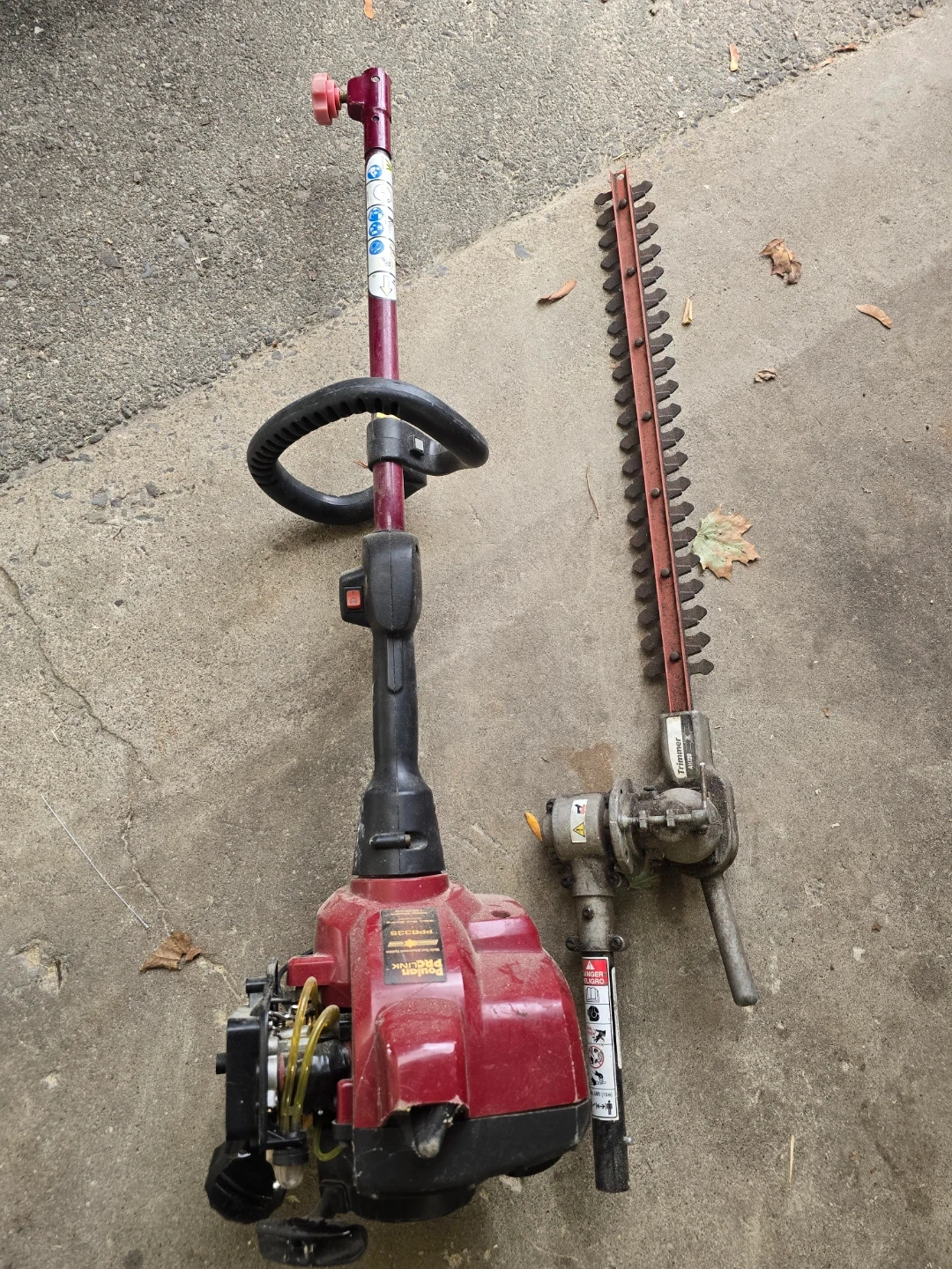 Selling a Poulan ProLink PPB335 Multi-Tool Attachment System. It's a 32cc gas string trimmer. Good for trimming and edging! Change the lines now it's not starting
