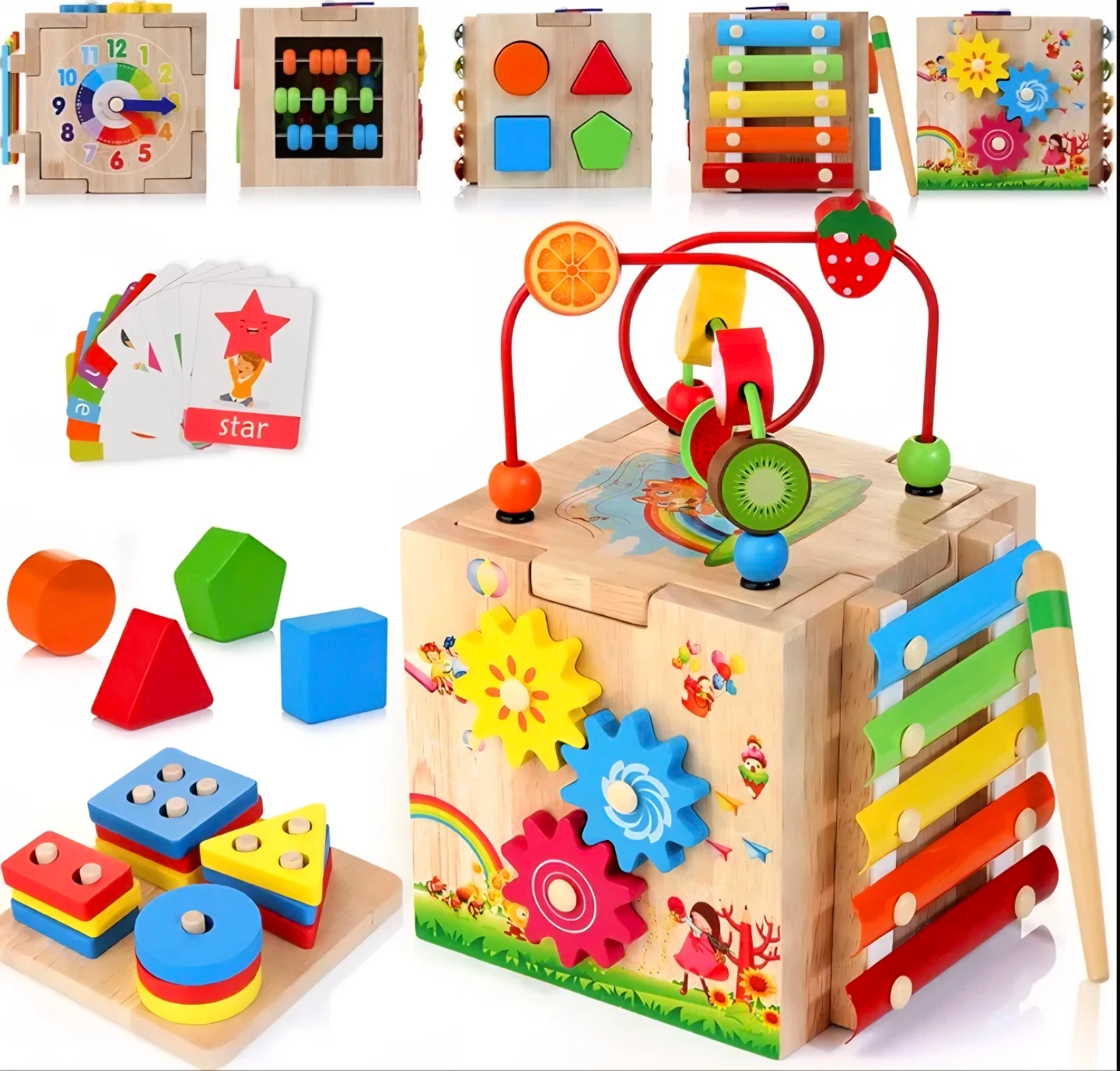 Hellowood 8 in 1 Wooden Activity Cube For Kids