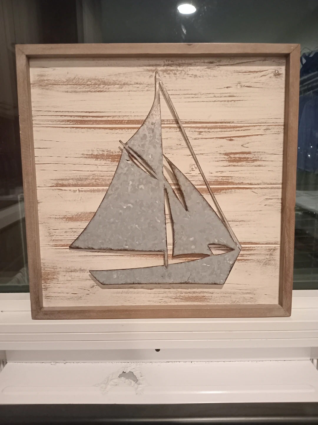 This is a sailboat wall decor piece that would look great in any room! It has a rustic, weathered look. Originally bought for $56.99
