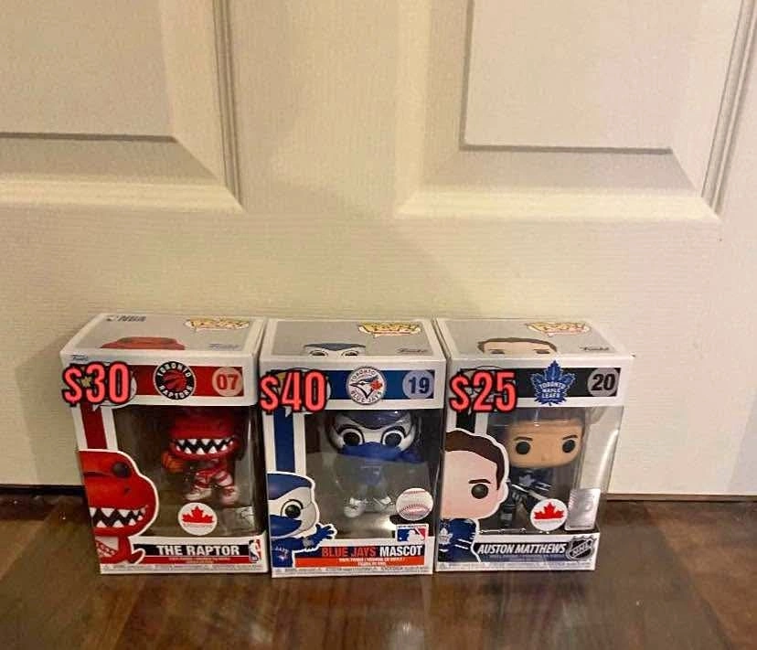 10Prices: - Toronto Maple Leafs Auston Matthews #20: $25 - Toronto Raptors The Raptor #07: $30 - Blue Jays Mascot #19: $40