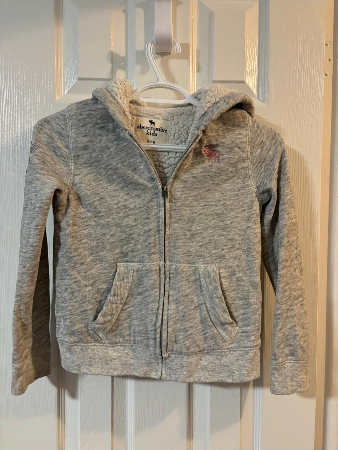 Selling a cute Abercrombie Kids grey zip-up hoodie in size 7/8 It's in great condition and perfect for keeping your little one warm and cozy!