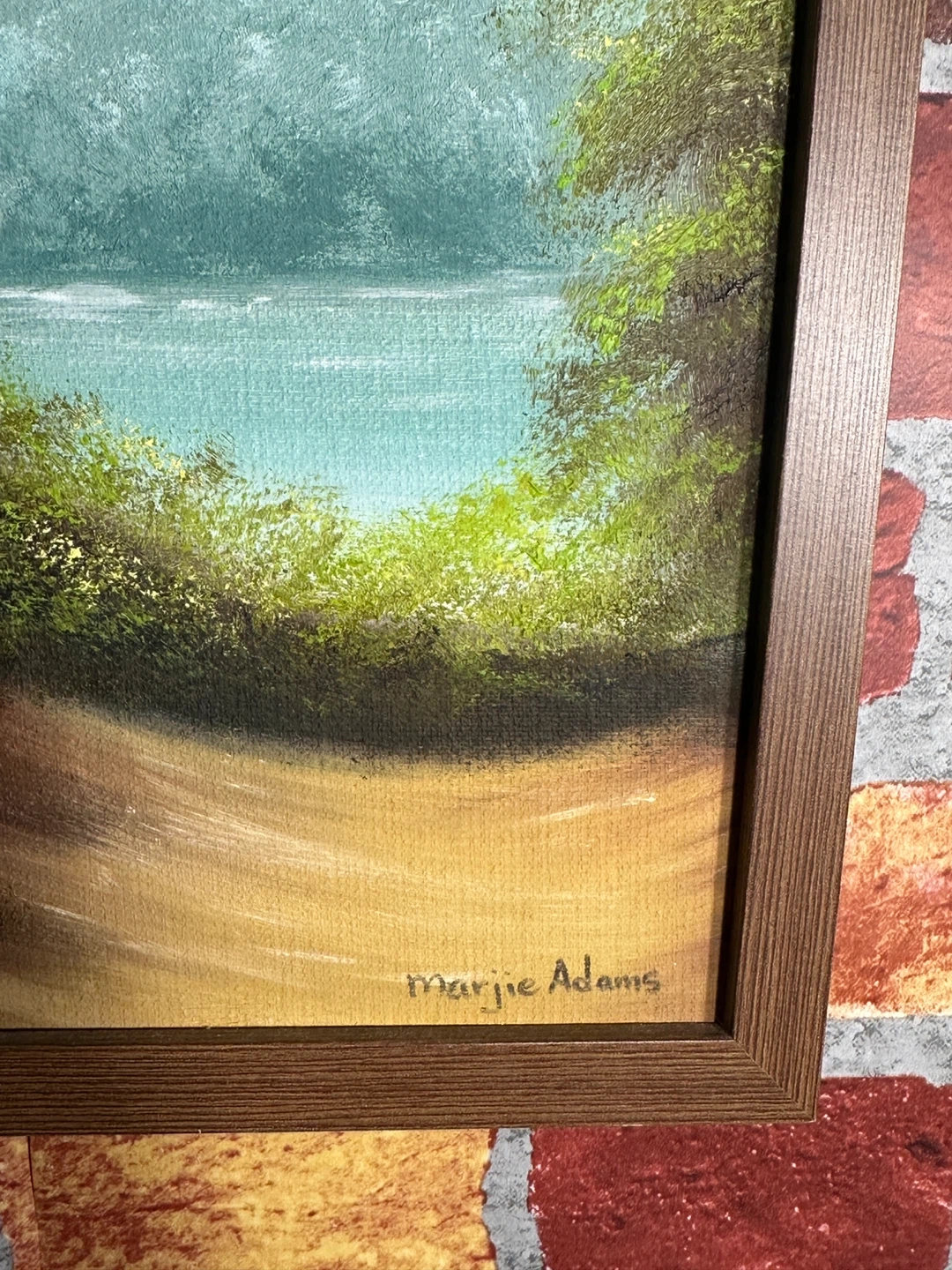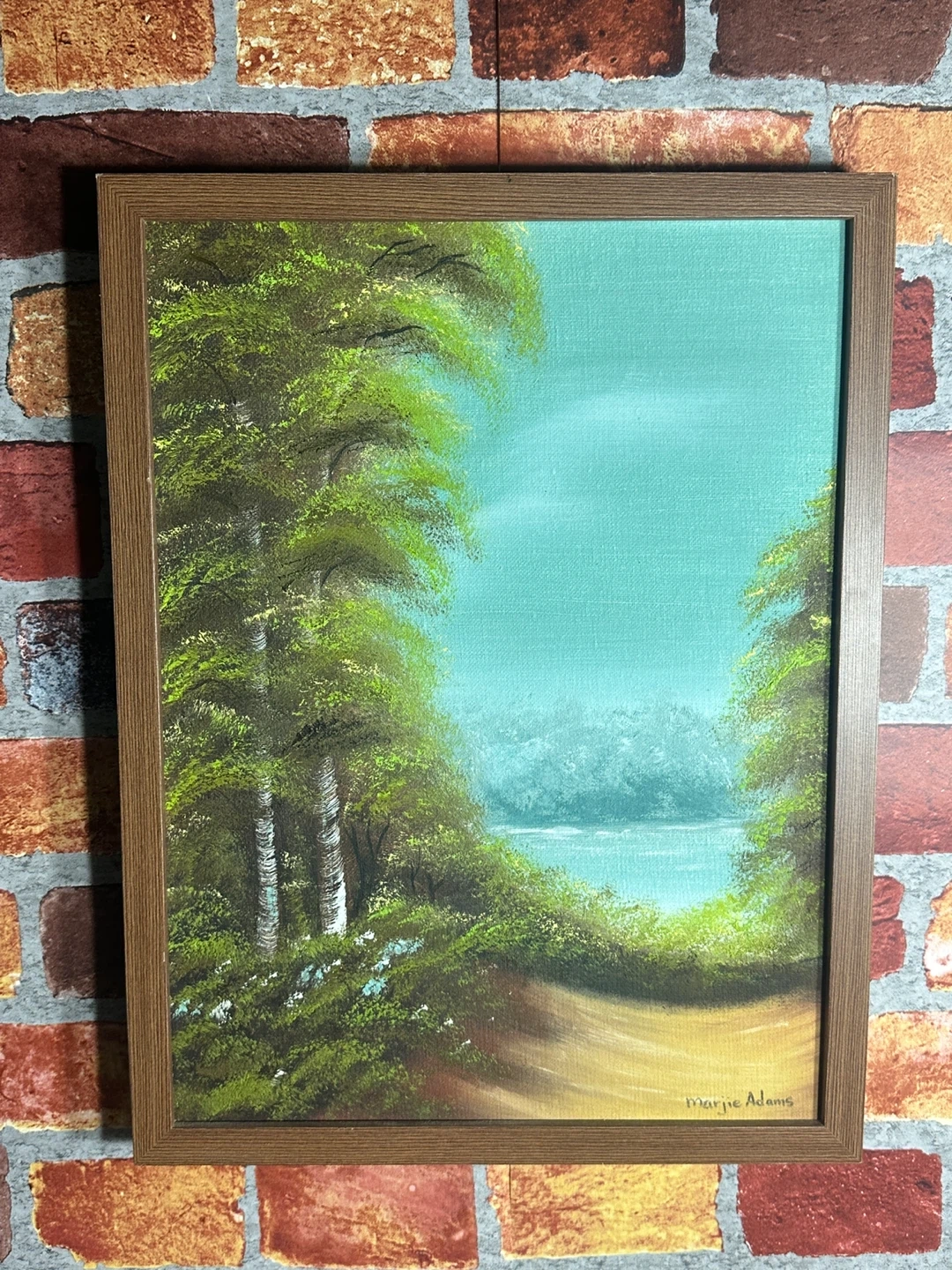 Original framed acrylic painting of a serene nature scene. Signed by artist Margie Adams. Measures 13 inches wide by 16 inches tall. A lovely addition to any home's decor!