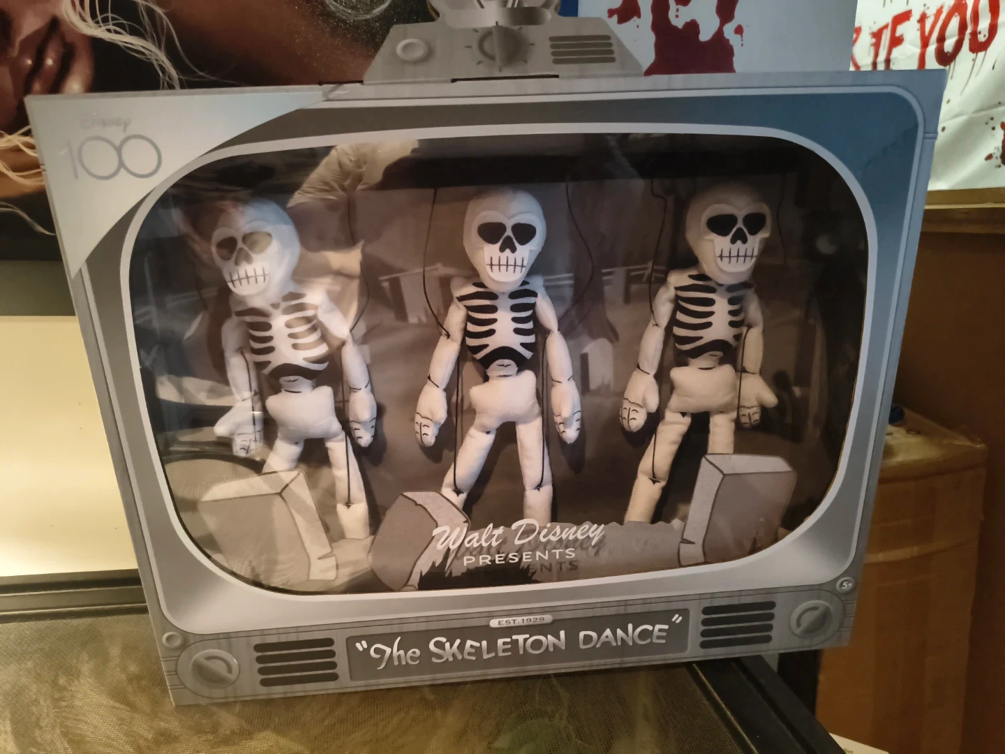Selling a Disney 100 "The Skeleton Dance" plush set! It features three skeleton plush figures in a TV-shaped box. A great addition for any Disney collector!