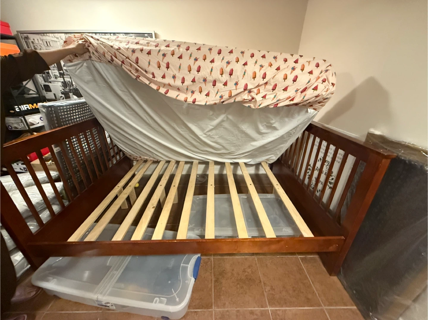 Gently used double bed frame with mattress too! Pick up only and if you like it we can disassemble for you.. easy to transport.