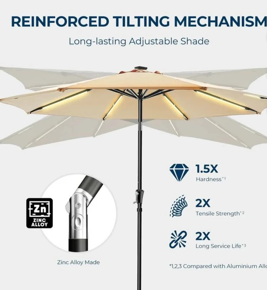 Brighten your patio or backyard with this 9FT Solar LED Lighted Patio Umbrella in elegant beige!