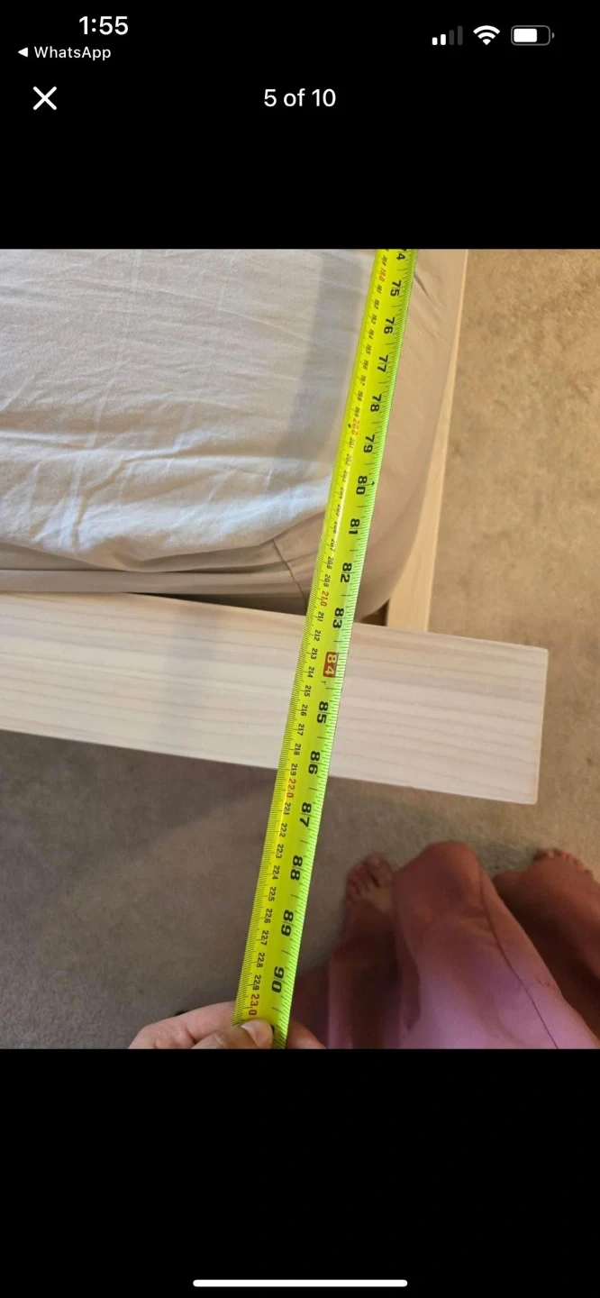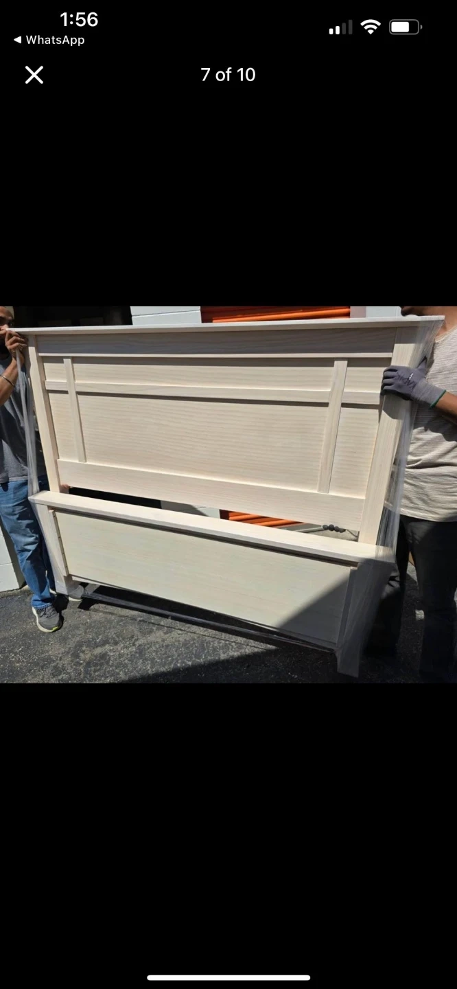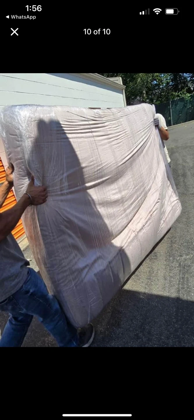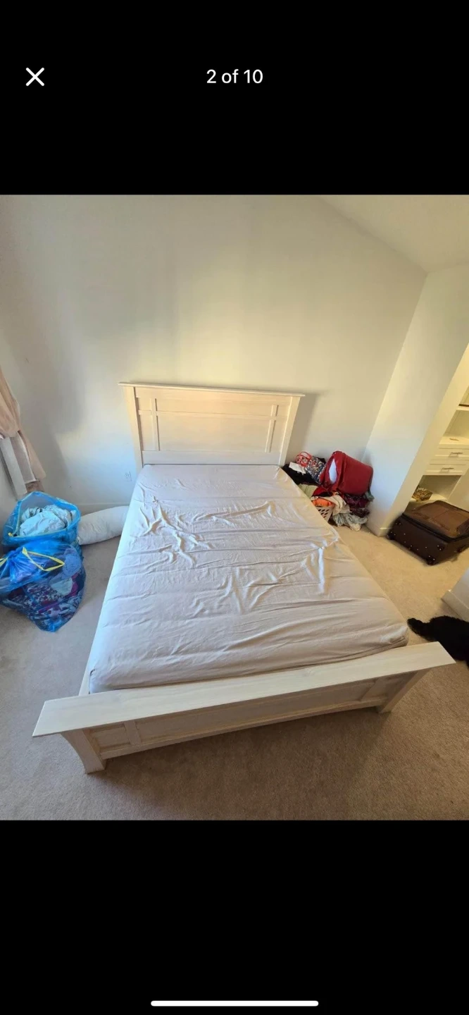 Selling a queen size bed with mattress. It's wrapped in plastic for protection during moving, and is in great condition. The bed frame is approximately 80 inches wide and 90 inches long.
