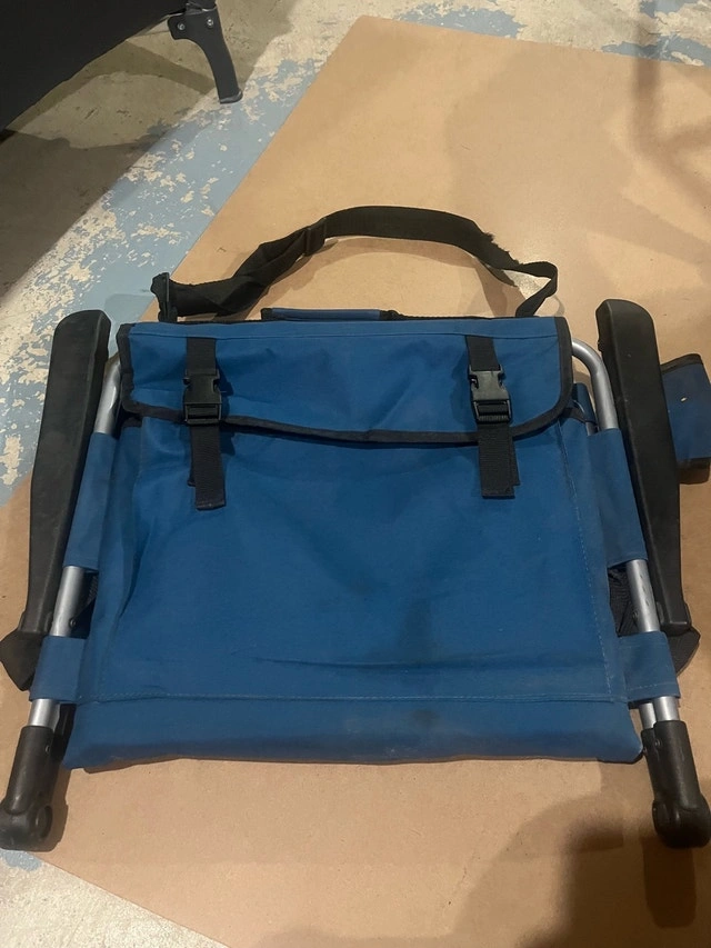 This is a used Broadstone canoe chair in good condition, perfect for adding comfort to your canoeing adventures. It features a supportive back and a padded seat.