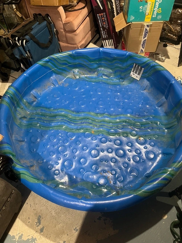 This blue kiddie pool is ready for some fun in the sun! It's just the right size for little ones to splash and play. Although it is used, it is still in good condition and ready for another summer of fun! I just brought it inside and have to clean it out. Looking for a way to cool off your little ones this summer? This kiddie pool is the perfect solution! Don't miss out—if you see this ad, it's still available!