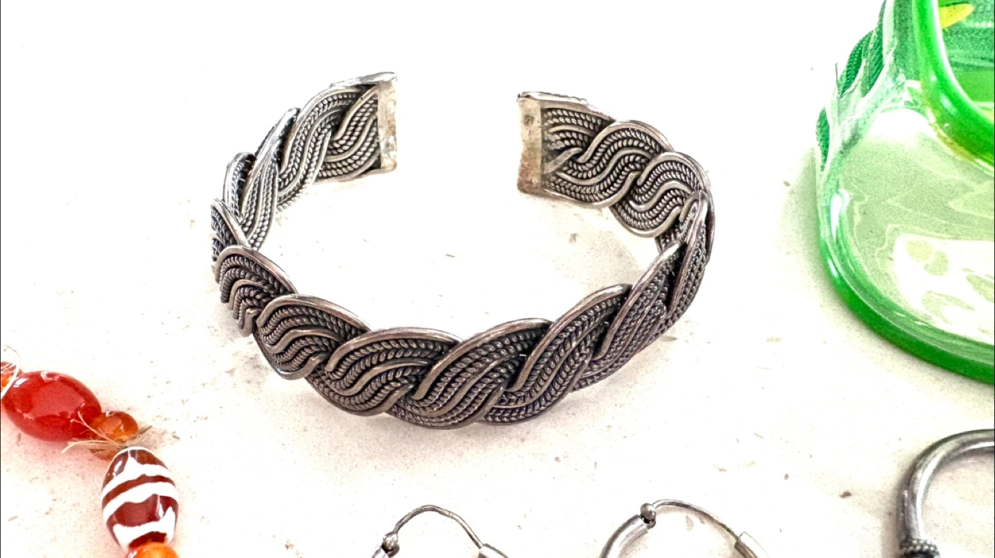 A selection of silver-tone jewellery, including bracelets, earrings, and rings! Great for adding a touch of sparkle to any outfit. Perfect for accessorizing or gifting to a friend.