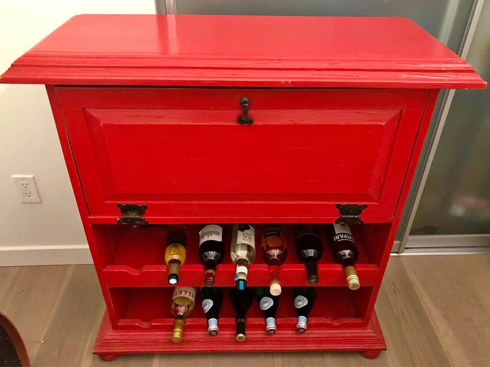 This is a 100 year old red liquor cabinet that we bought a few years back. It’s solid wood. It had just been refurbished when we bought it. It’s a gorgeous piece; we just moved though and it doesn’t work in our new space.