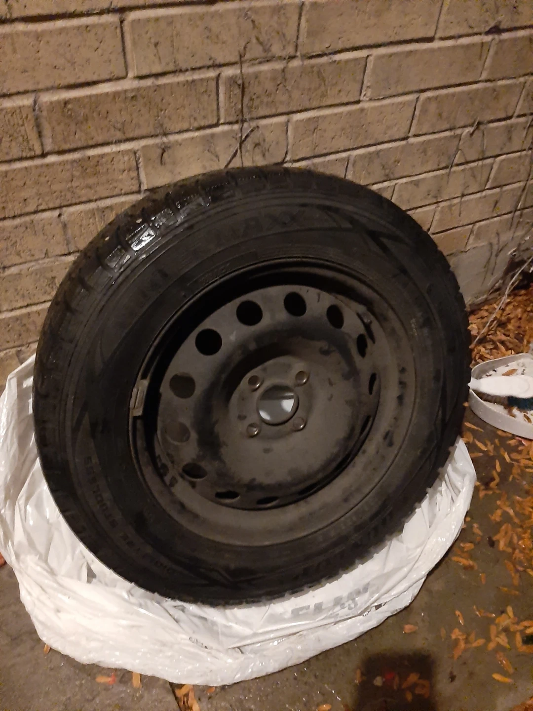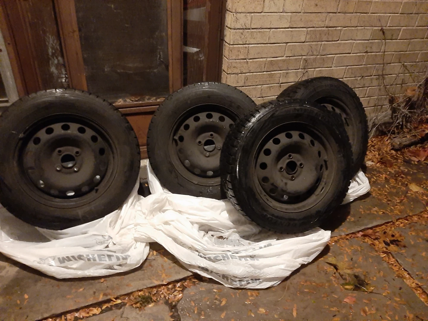 4 DUNLOP STEEL BELTED RADIAL SNOW TIRES 195/65 R15. WERE ON A HONDA CIVIC THAT HAD LOW MILEAGE. TREAD IS STILL IN GOOD SHAPE $130 (PLEASE NOTE TIRES COMPATIBLE WITH A 4 LUGNUT CONNECTION, NOT 5.