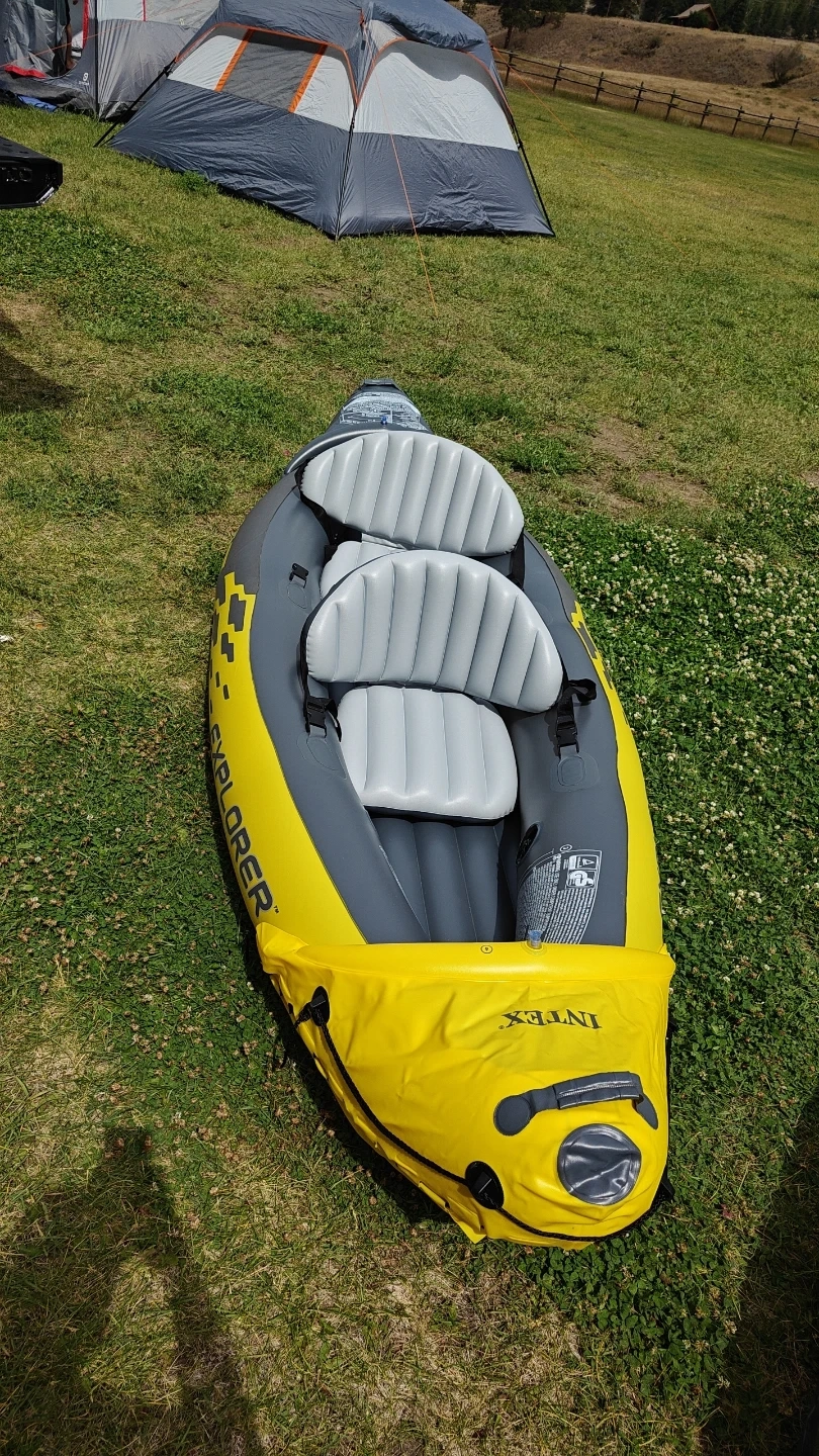 I'm selling an Intex inflatable kayak! It's in great shape and ready for some fun on the water. Perfect for a relaxing day at the lake or a gentle river adventure. Easy to inflate and deflate for convenient storage and transport!