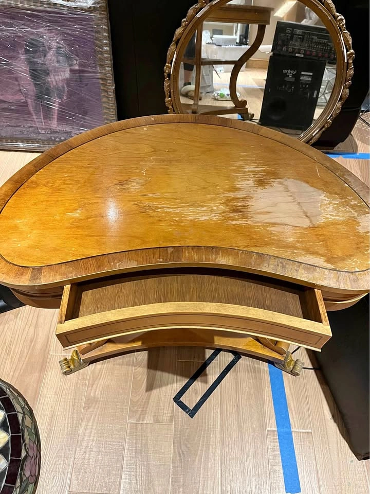 Buy & SellVintage kidney shaped writing deskVintage kidney shaped writing desk$160Beautiful vintage desk or side table. Top is worn from age. Pick up in MerrickWHERE TO MEETCheck LocationView MapSELLERverifiedE pollackMerrick600 reviews0 chats·0 favorites·21 views