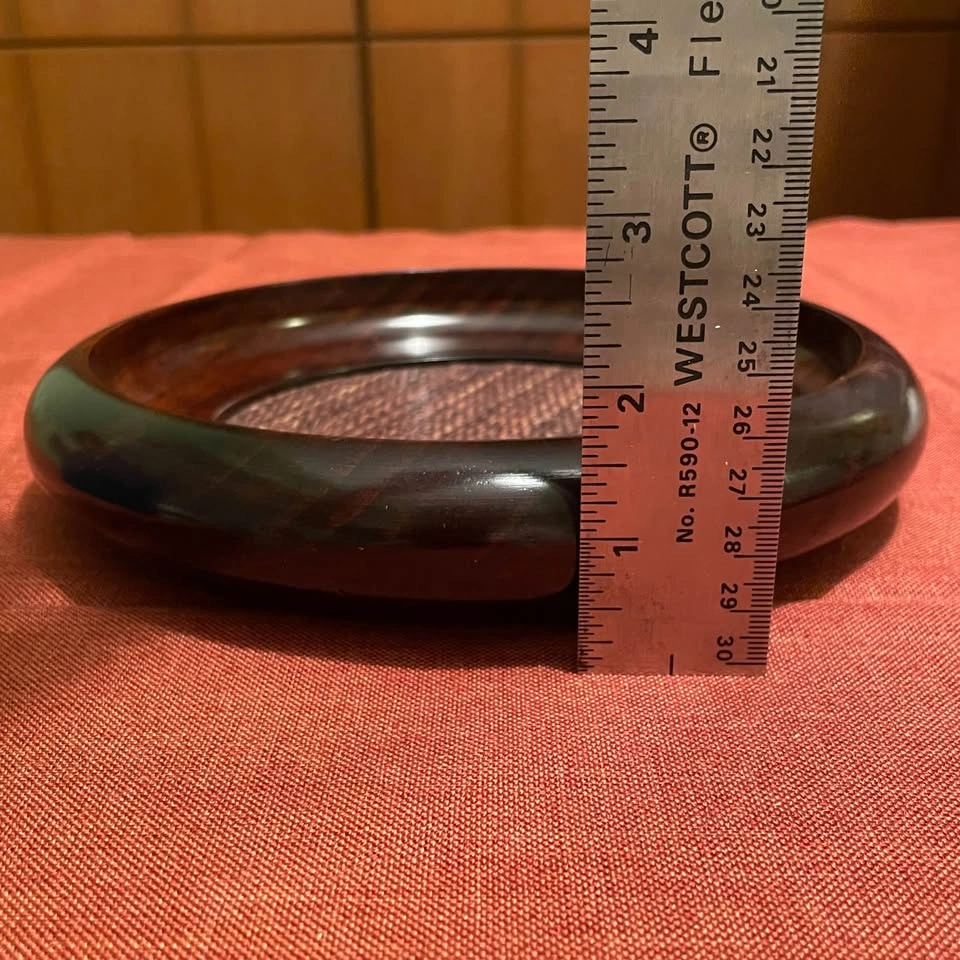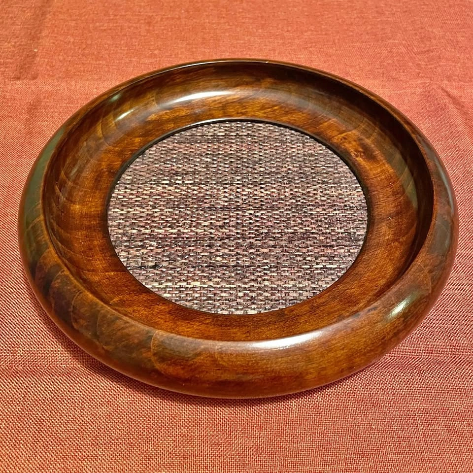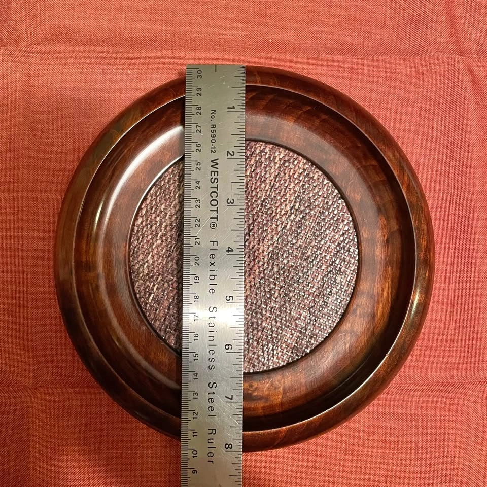 75Pick up at Don Mils & Steeles Elegant round wooden bowl with a woven center. Rich brown color adds warmth to any space. Condition: Excellent. Pre-owned but unused Dimensional: 8 in (approx. 20 cm)