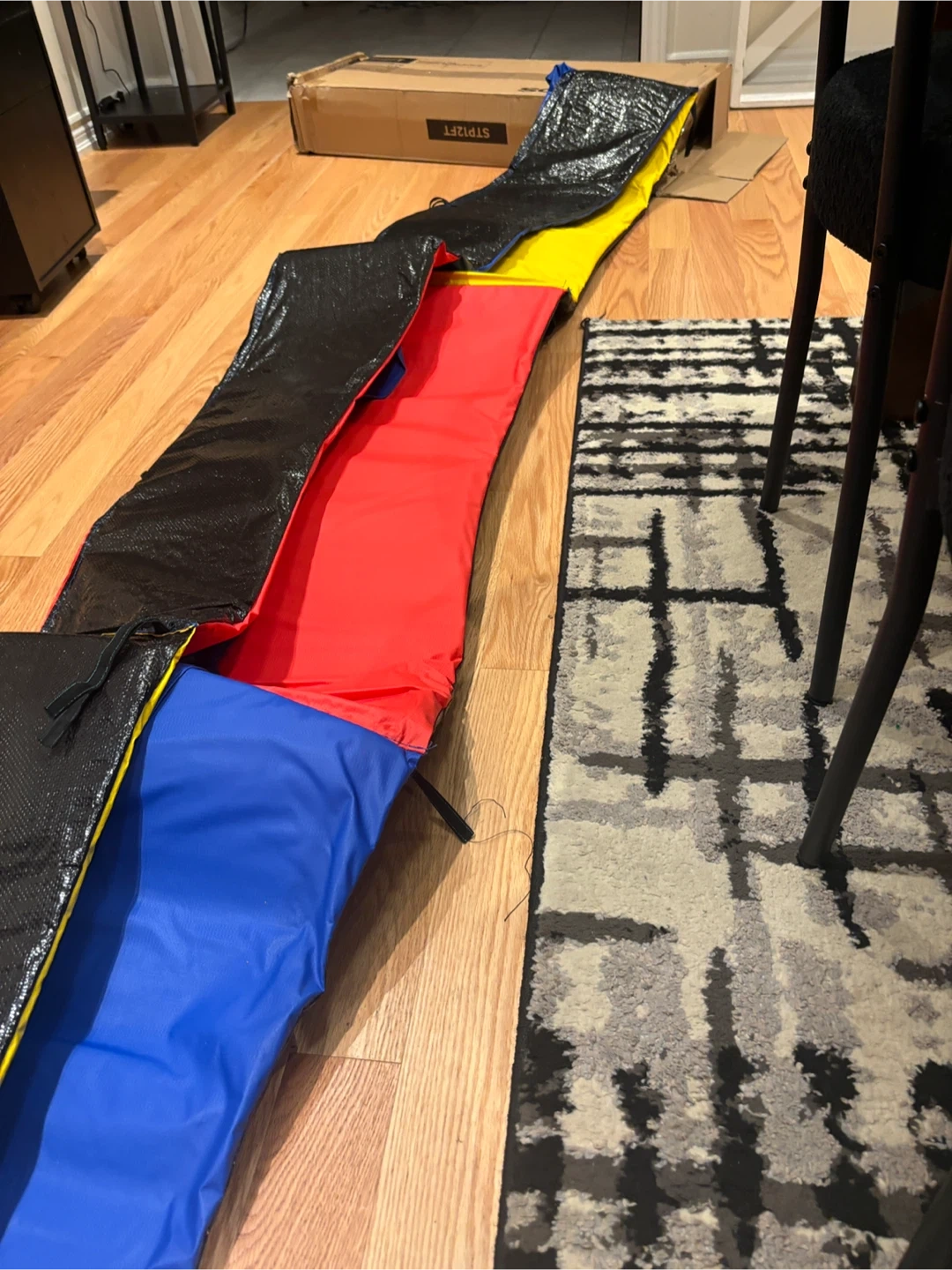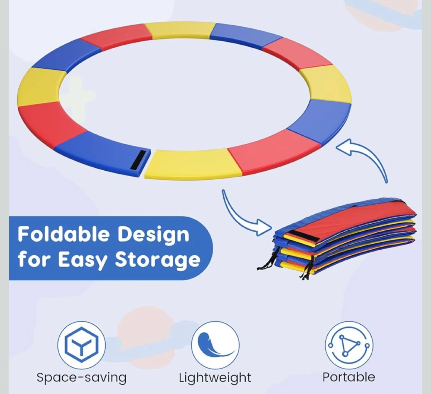 Selling a trampoline safety pad with a foldable design for easy storage. It's space-saving, lightweight, and portable, making it super convenient. Perfect for keeping your little ones safe while they bounce around!