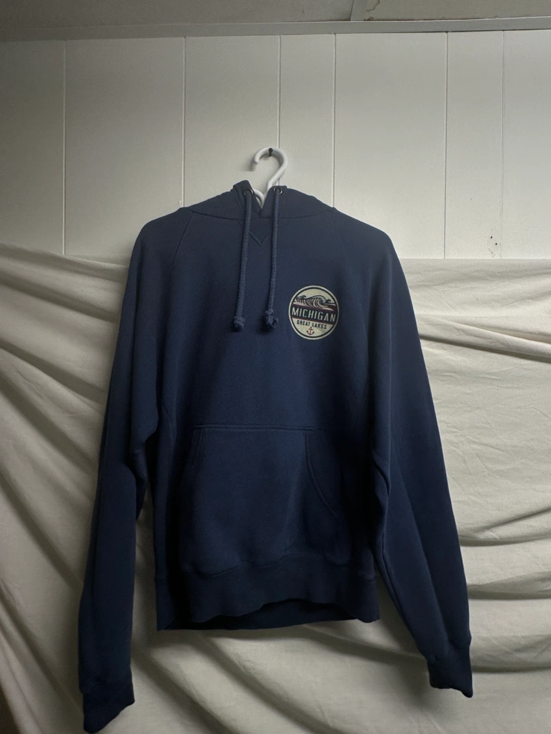 Cozy Blue 84 hoodie featuring a Michigan Great Lakes design! It's a size medium and in great condition. Perfect for showing off your Michigan pride or staying warm on cooler days. The material is soft and comfortable, making it ideal for everyday wear