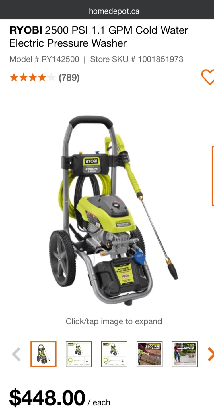 Selling a brand new Ryobi 2500 PSI electric pressure washer! It's still in its original box and includes the handle/wand and nozzles. This model features a brushless motor and delivers 1.2 GPM. Also has a turbo nozzle for up to 50% faster cleaning and an on-board soap tank for added convenience!