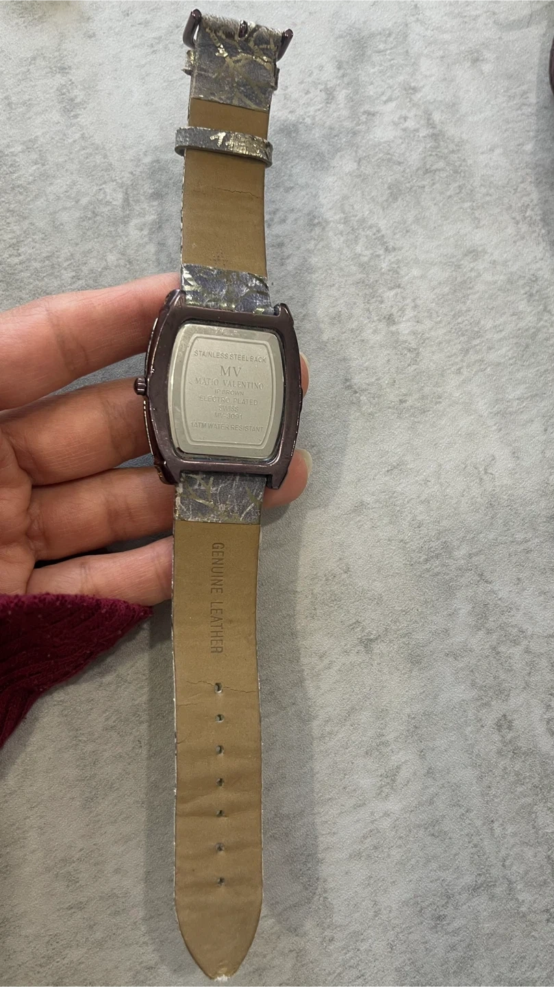 Selling a women's watch by Matio Valentio! The back is stainless steel and the band is genuine leather. It's water resistant up to 30M