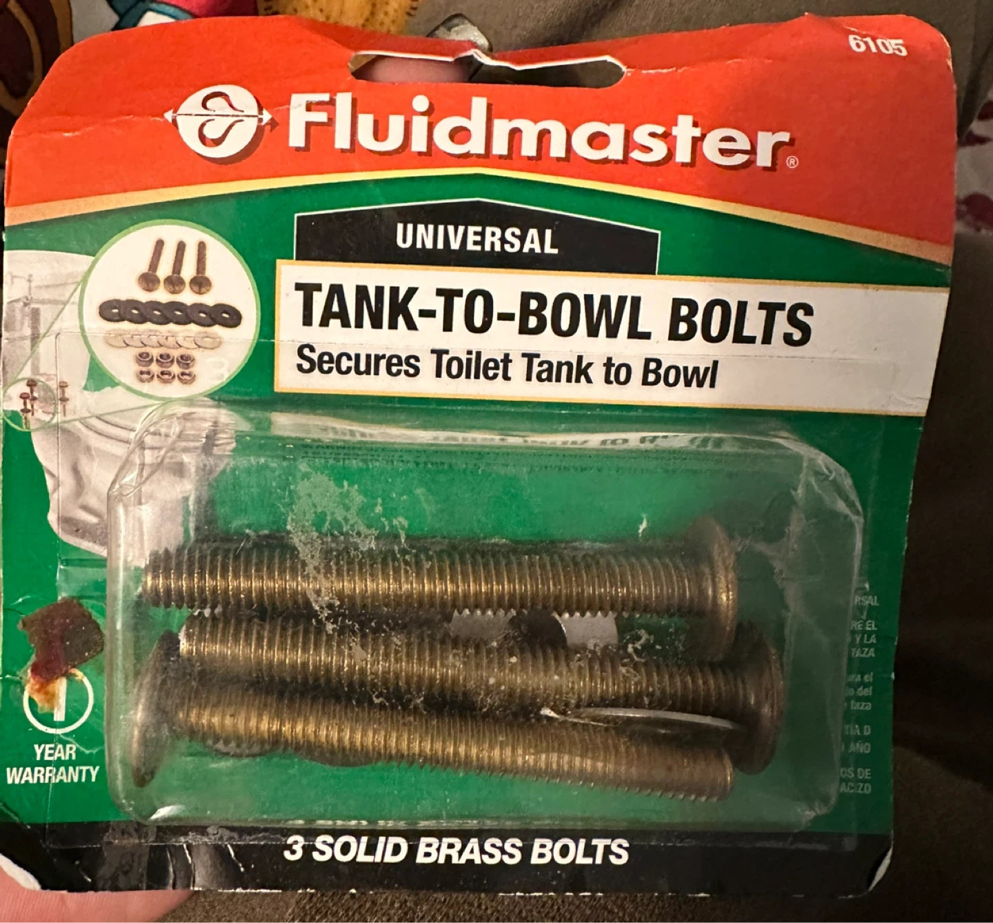 Selling a pack of Fluidmaster Universal Tank-to-Bowl Bolts! Missing pieces.