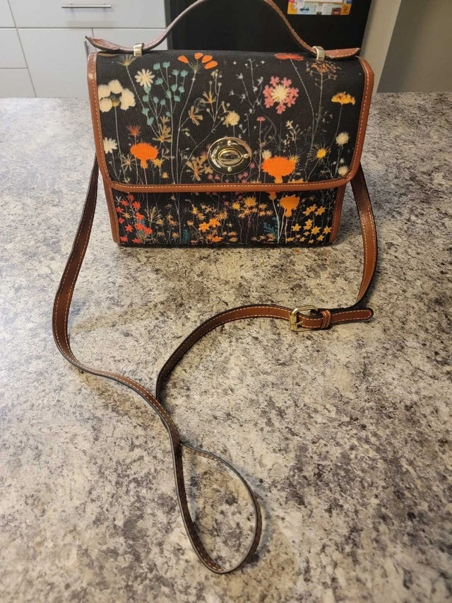 Used but in excellent condition!! A super sturdy little purse/handbag that my girlfriend no longer needs! Has a detachable, adjustable leather strap and a metal clasp on the flap! I think it was custom made? She just needs a bigger bag now. Pickup only in sherwood park!!