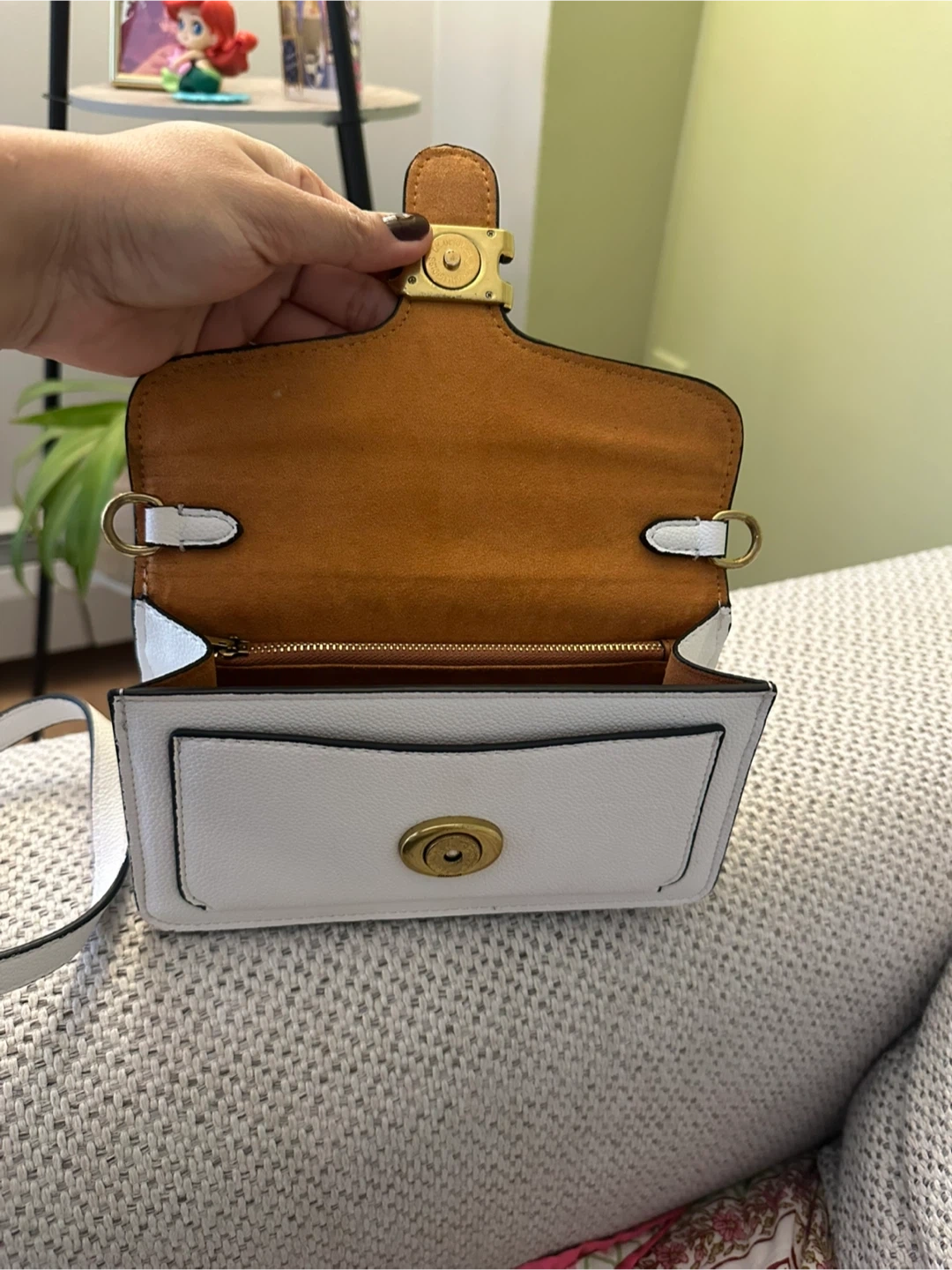 Selling a Coach Tabby 20 shoulder bag in white. It's in great condition and perfect for everyday use! The bag features a gold-tone 'C' buckle and a detachable chain strap.