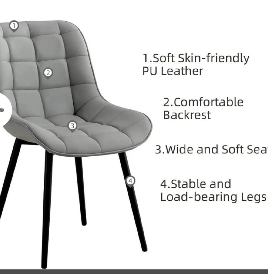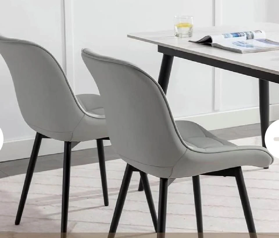 Dining Chairs Set of 2, Mid Century Modern Kitchen Dining Room Chairs, Grey Upholstered Faux PU Leather Armless Chairs for Bedroom Living Room with Metal Legs
