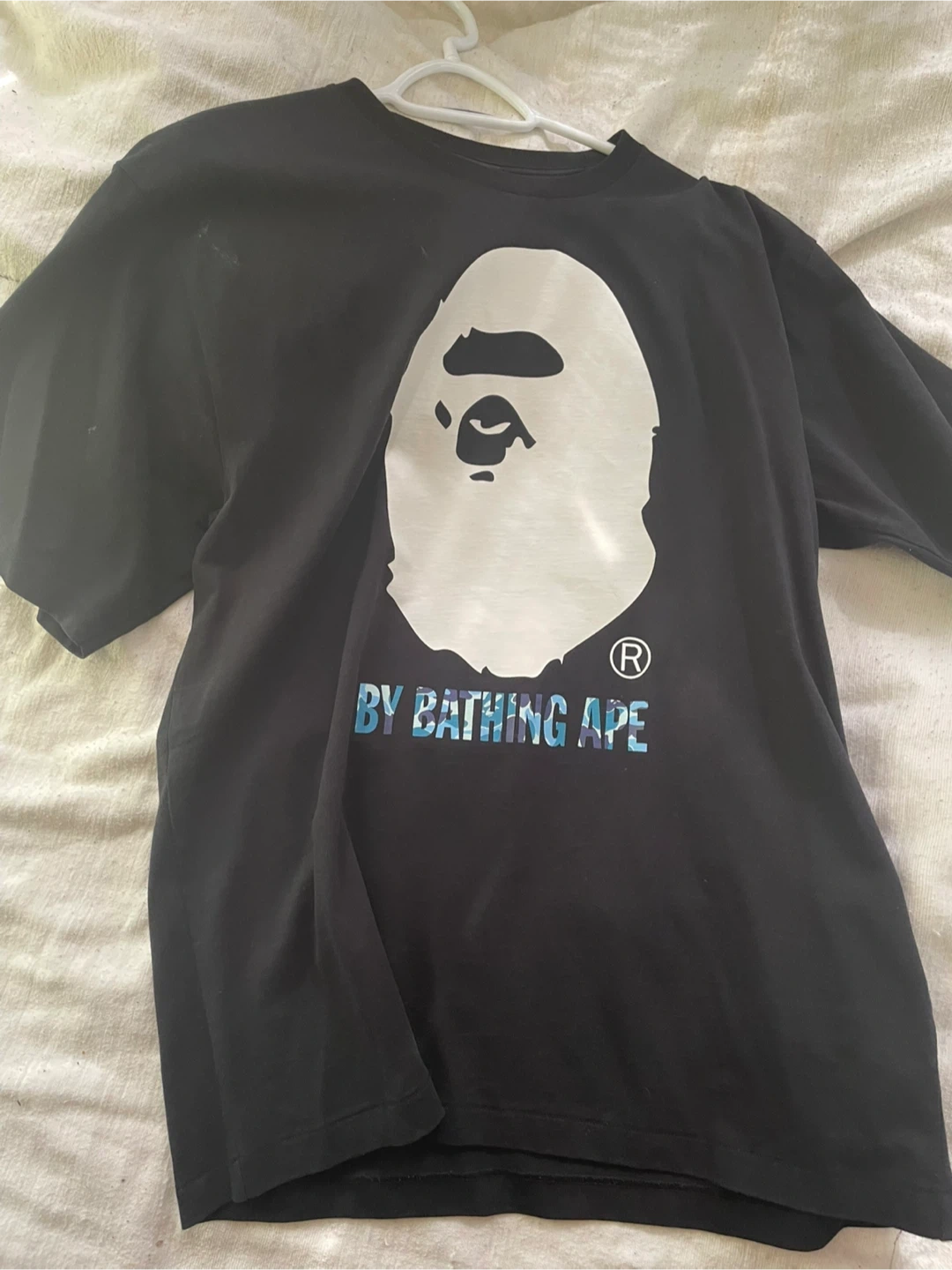 Selling a Bathing Ape T-shirt. The shirt is black with the brand's logo printed on the front. It's in good condition and ready for a new home!