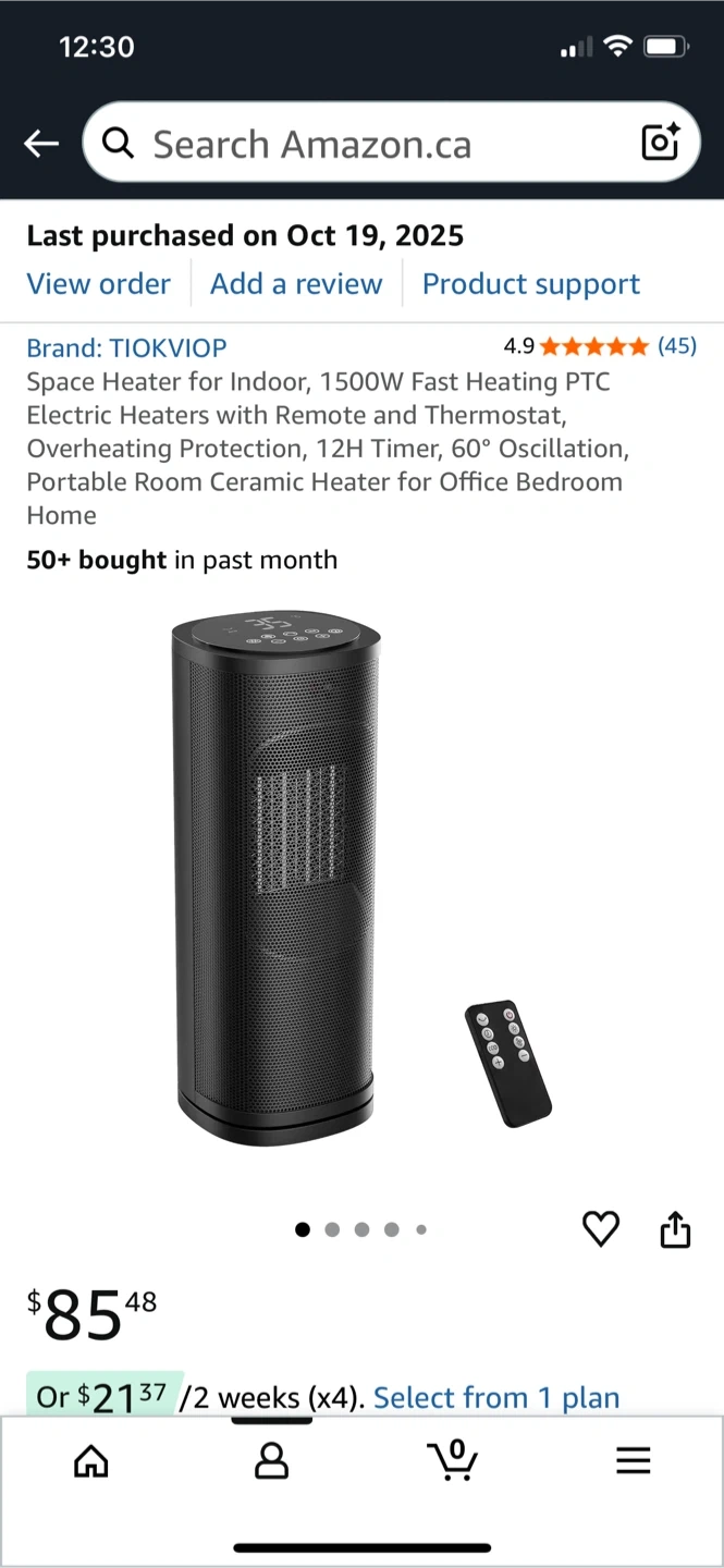 607Bought in Oct 2025. Selling a TIOKVIOP space heater in excellent condition! It's a 1500W fast heating PTC electric heater. It features remote and thermostat, overheating protection, a 12H timer, and 60° oscillation. Perfect for a bedroom or home office!