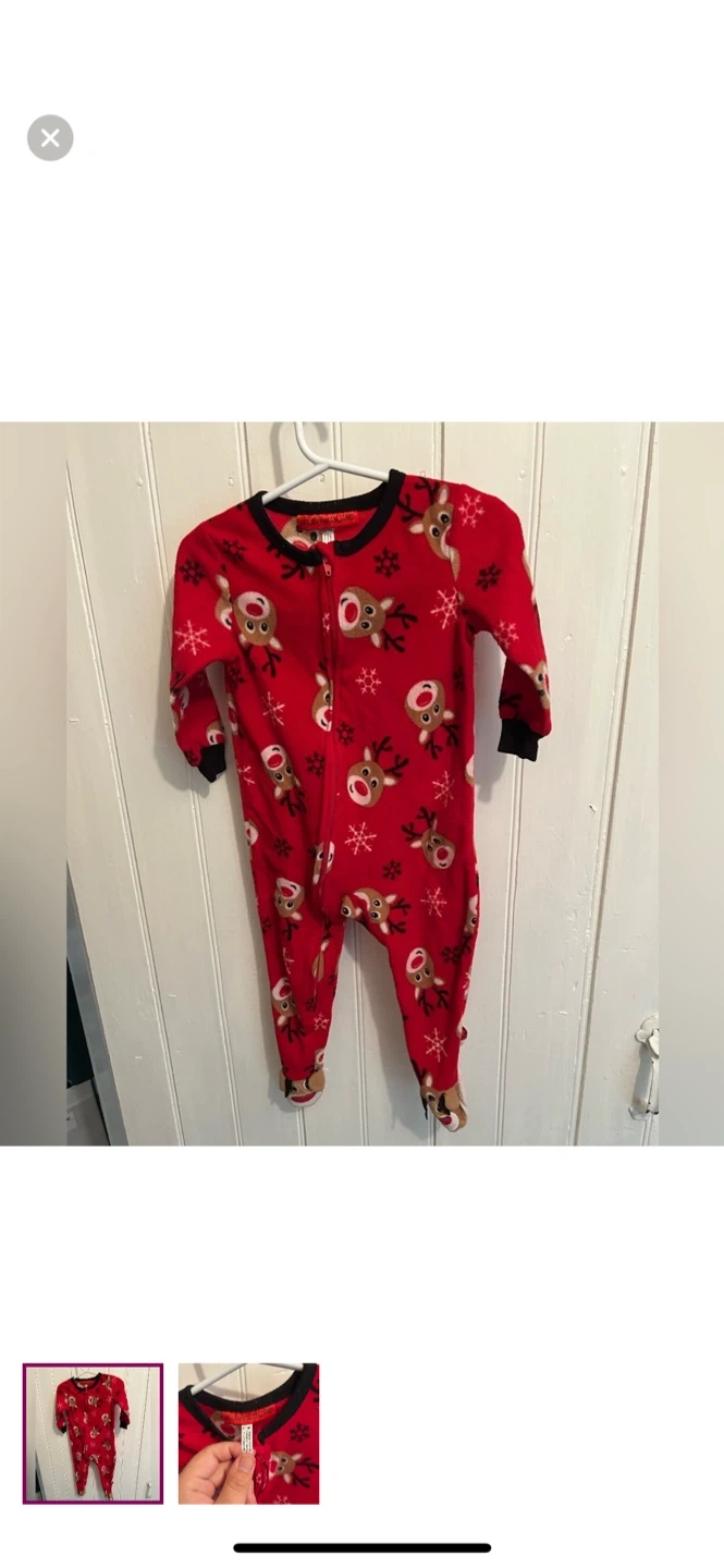 Fam Jams brand. Fleece zip up sleeper. Red reindeer print. Size 12/18m. Brand new condition