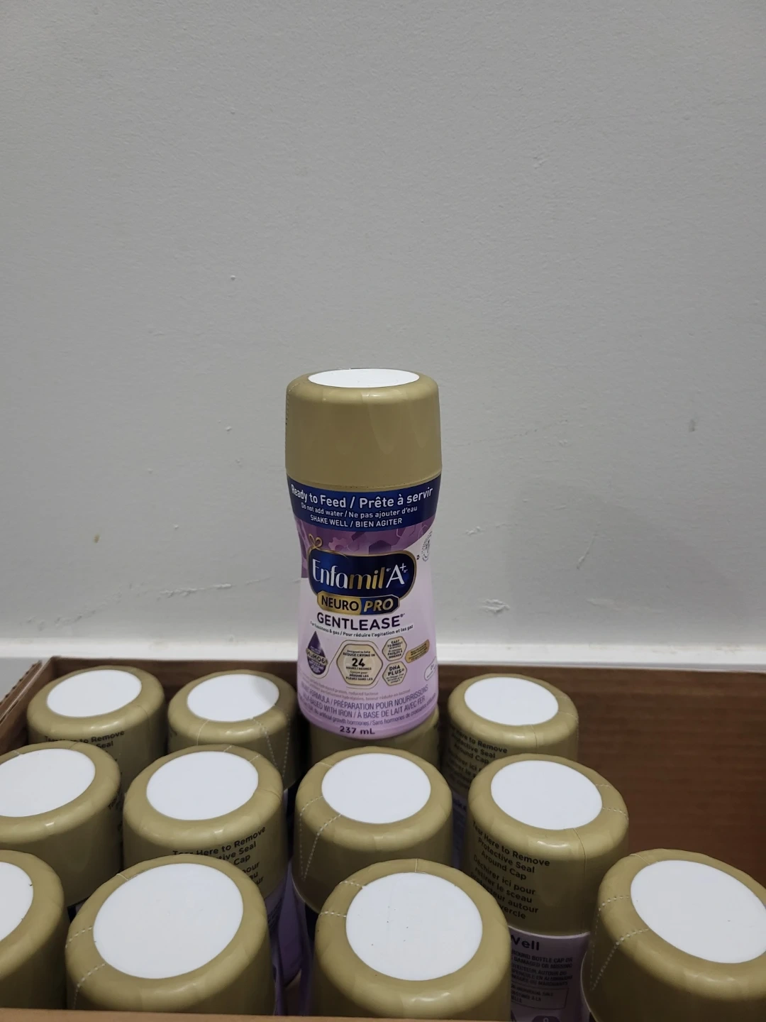 I have a box of Enfamil A+ NeuroPro Gentlease Ready to Feed bottles for sale. These are perfect for newborns aged 0+ months. Each bottle contains 237 ml of infant formula. The expiration date is 2026 June 01.